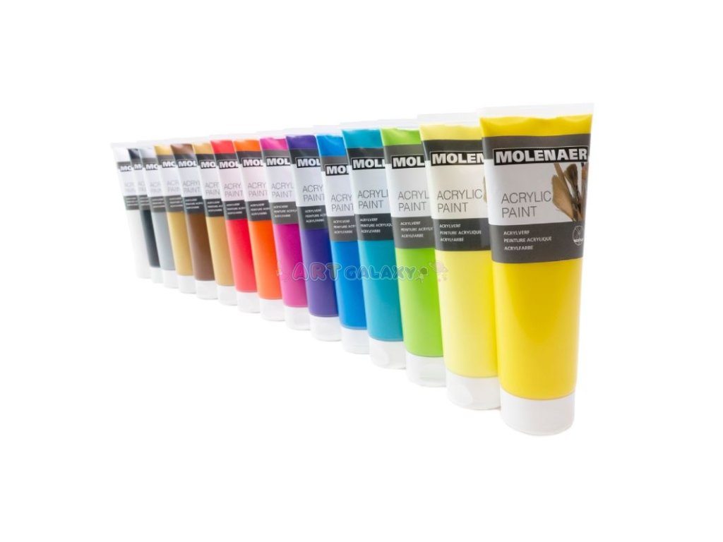 Akrylová barva značky Creall Molenear má syté barvy a dobrou krycí schopnost s lesklým efektem, výhoda je velké balení. Barvy jsou ředitelné vodou a po zaschnutí voděodolné. Barvy jsou vhodné pro všechny milovníky výtvarného umění.