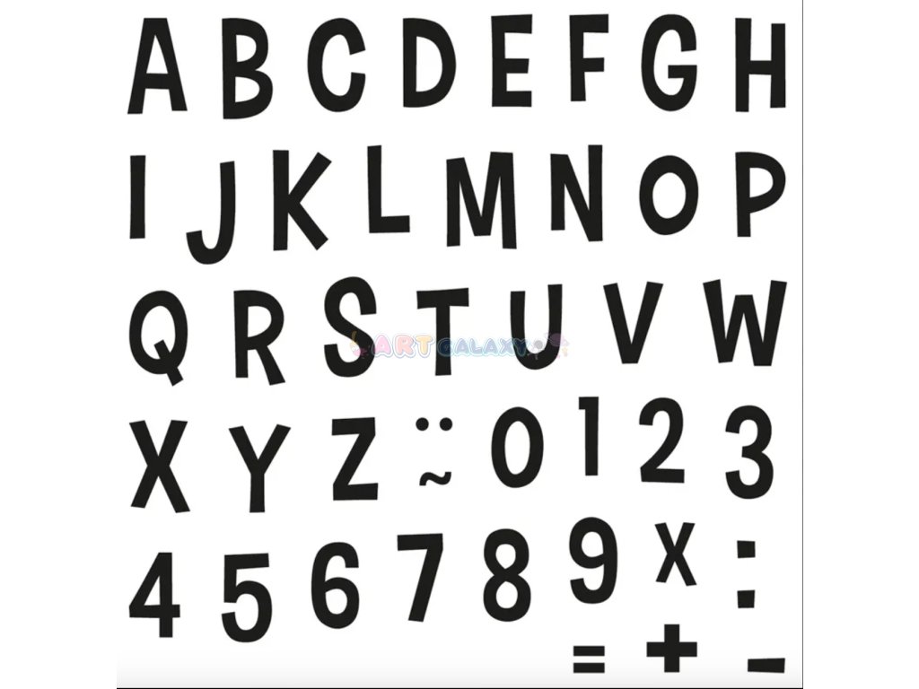 - Počet razítek: 43 ks (písmena A-Z, číslice 0-9, speciální znaky)