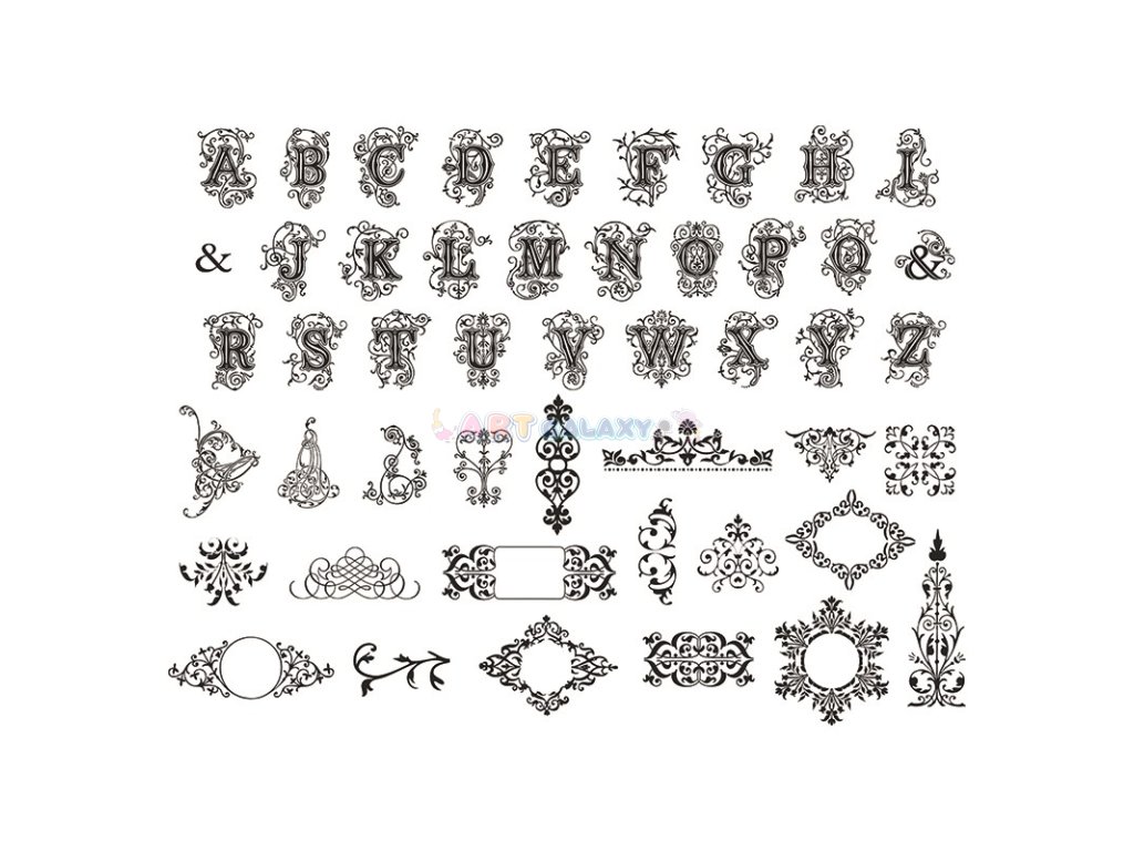 - motivy listů arabesek a zdobné abecedy