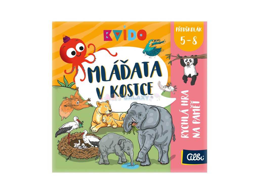 Paměťová hra Kvído Mláďata v kostce zavede nejmladší hráče do světa domácích i exotických zvířat. Na ilustrovaných kartách jsou znázorněny zvířecí rodiny s mláďaty v jejich přirozeném prostředí.