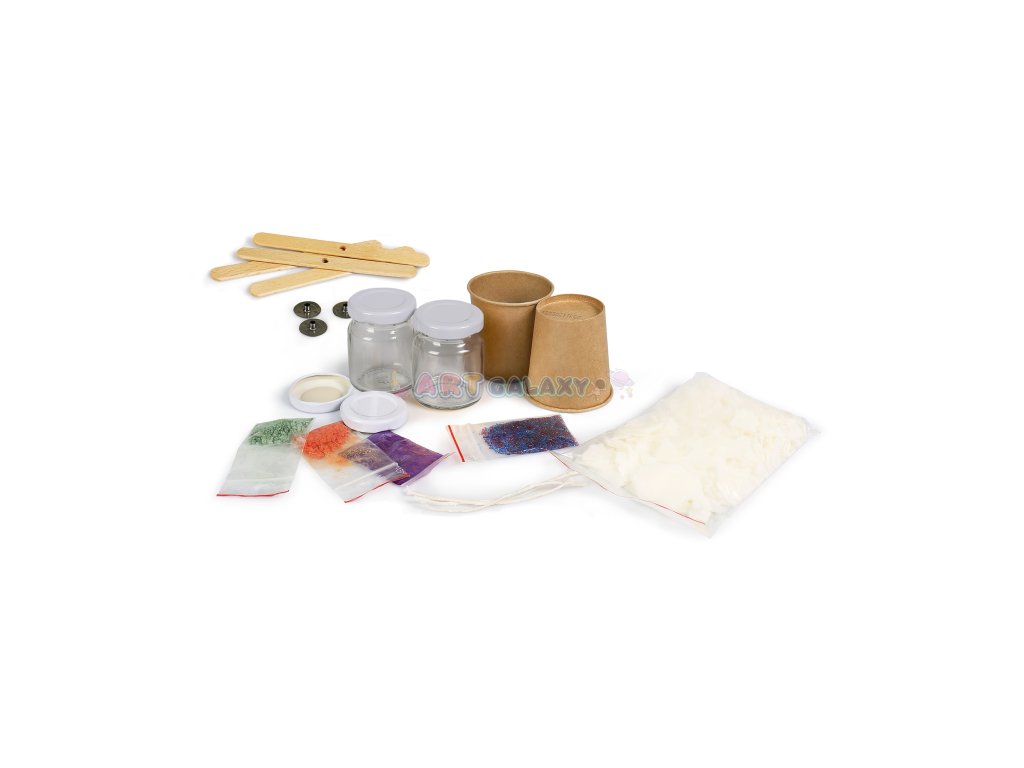 Rozpusťte sojový vosk z certifikovaných zdrojů, vyberte si barvu, kterou ho obarvíte, nalejte do skleniček a dozdobte si barevnými třpytkami a skleněnými perličkami.