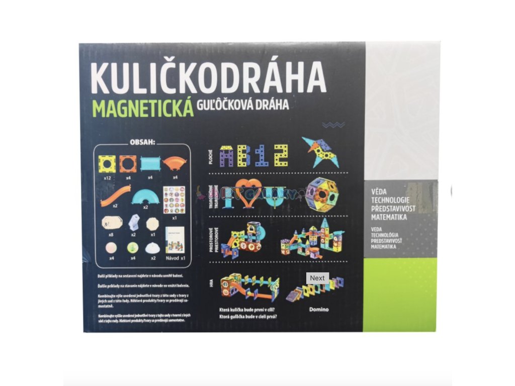 - Obsah balení: 49 dílků, včetně barevných magnetických částí a svítících kuliček.