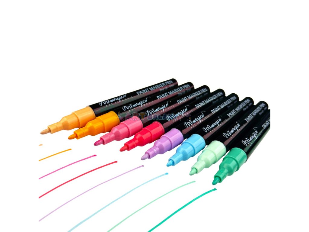 Artmagico nabízí moderní akrylové popisovače, jež jsou plněny kvalitním italským inkoustem a jejichž hroty jsou vyrobeny v Japonsku a jsou zárukou kvality a dlouhé životnosti. Barva inkoustu má vysokou krycí schopnost, je voděodolná a světlostálá, nedochází k jejímu blednutí, barvy zůstávají jasné a je možné je vzájemně míchat a tvořit tak další barevné odstíny. Díky konzistenci inkoustu je možné stínovat také za pomocí vlhkého štětce a dát tak malování s fixy nový umělecký rozměr.