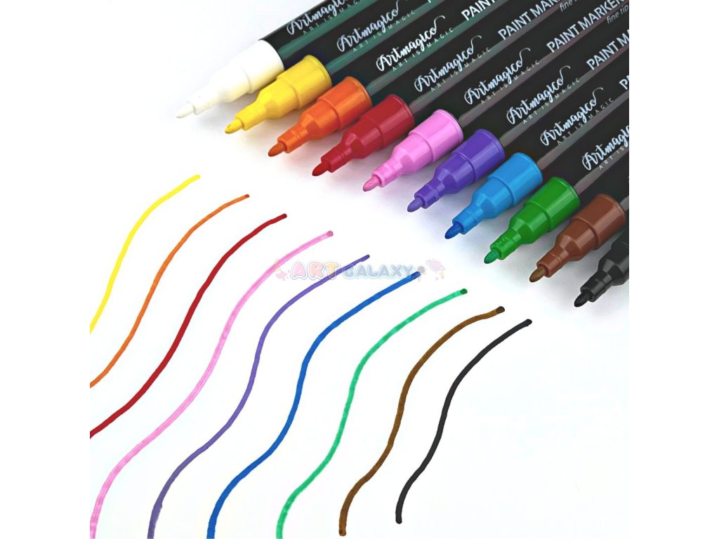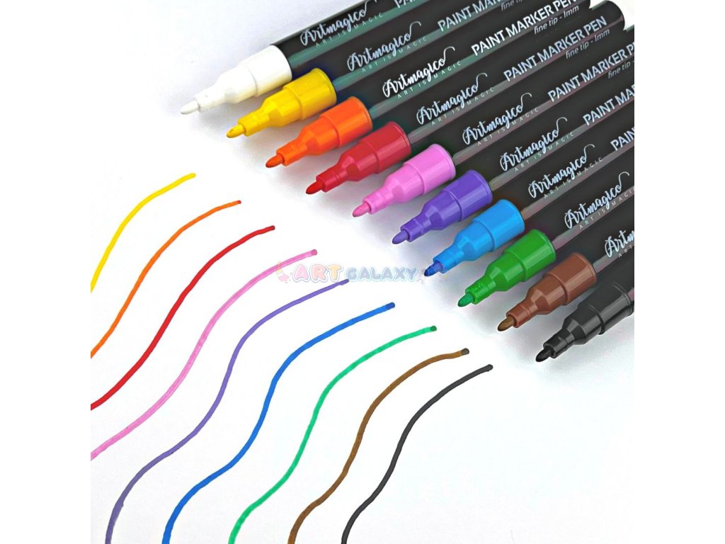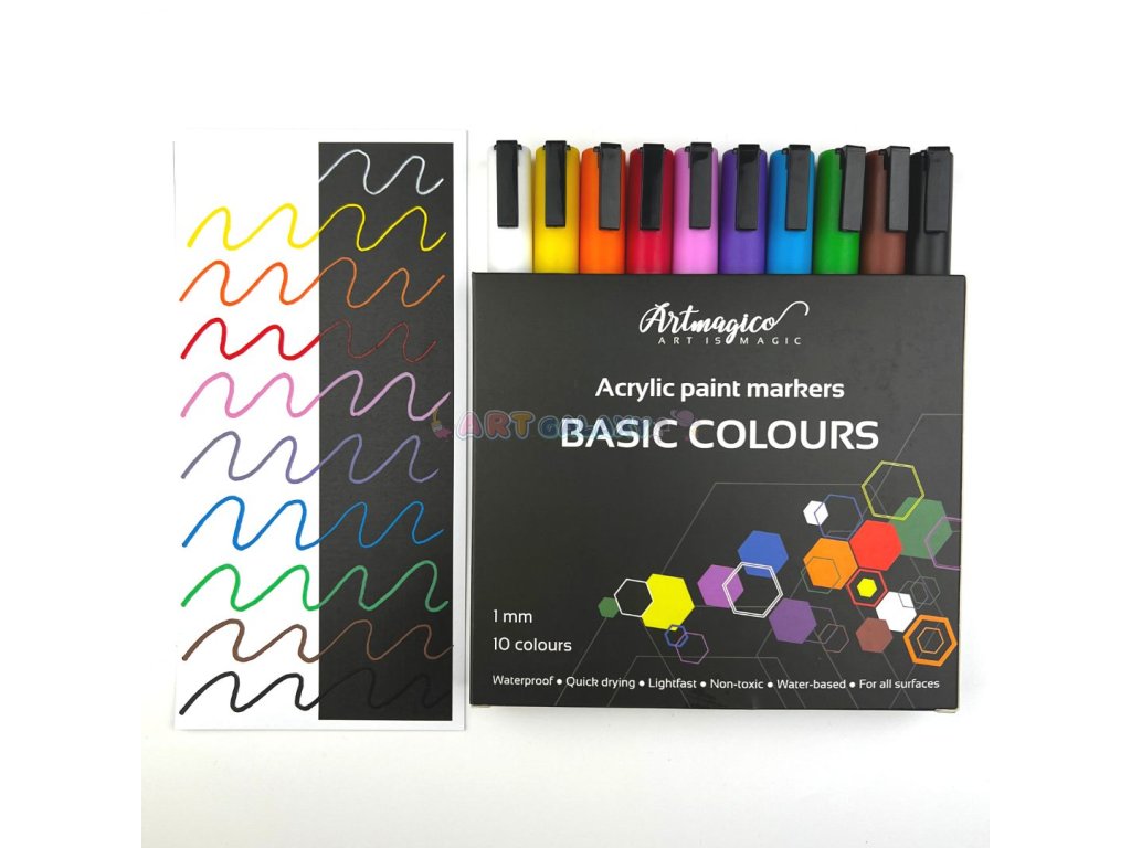Artmagico nabízí moderní akrylové popisovače, jež jsou plněny kvalitním italským inkoustem a jejichž hroty jsou vyrobeny v Japonsku a jsou zárukou kvality a dlouhé životnosti. Barva inkoustu má vysokou krycí schopnost, je voděodolná a světlostálá, nedochází k jejímu blednutí, barvy zůstávají jasné a je možné je vzájemně míchat a tvořit tak další barevné odstíny. Díky konzistenci inkoustu je možné stínovat také za pomocí vlhkého štětce a dát tak malování s fixy nový umělecký rozměr.