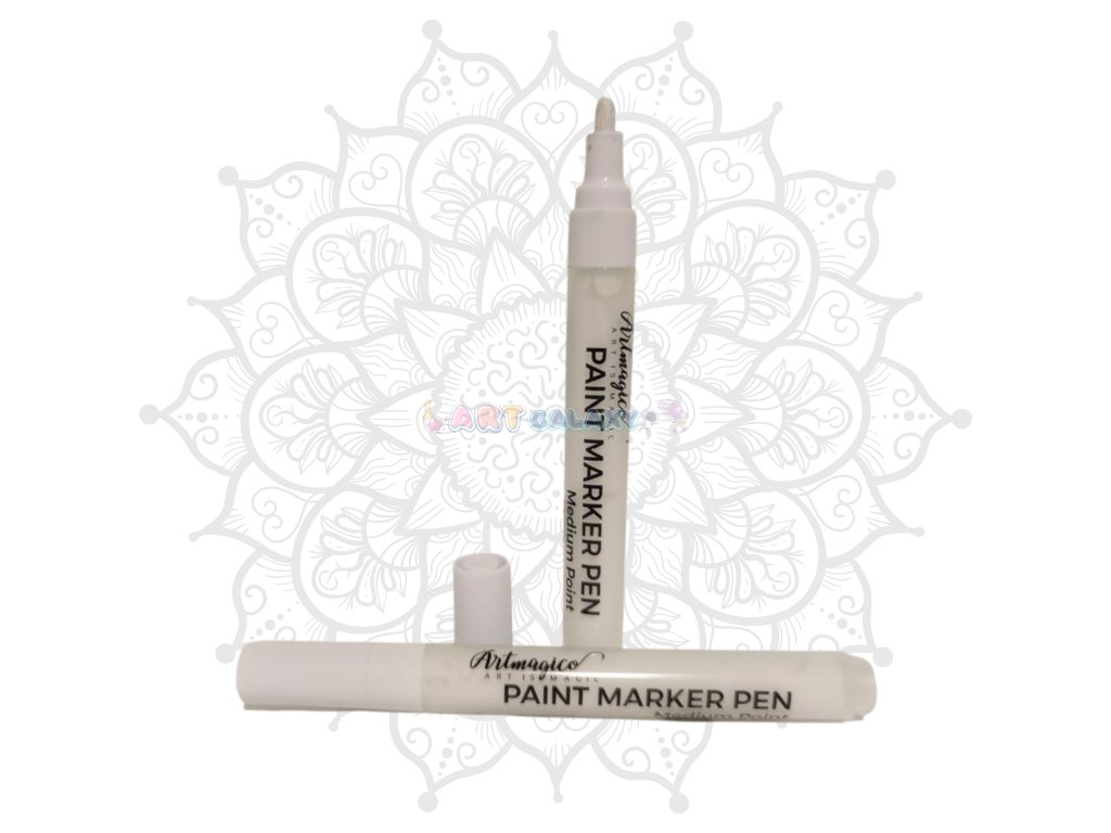 Akrylový fix zn. Artmagico se středním hrotem o šíři 2 - 3 mm a bílým inkoustem prémiové kvality. Čistě bílá barva, nejkvalitnější hrot a dokonale krycí inkoust v lesklé barvě si oblíbí každý umělec! Luxusní akrylové fixy Artmagico jsou velmi oblíbené zejména pro malování na kamínky. Artmagico nabízí fixy nejvyšší kvality v elegantním designu. Plynulý tok barvy zajišťuje kvalitní inkoust na vodní bázi. Inkoust je rychleschnoucí, trvalý, bez zápachu a zároveň netoxický. Barvy zůstávají po uschnutí hladké, lesklé a neprůhledné na všech typech povrchů. Hroty popisovačů Artmagico jsou ideální na tvoření a vymalování větších ploch. Díky kombinaci vlastností popisovačů Artmagico budou Vaše výtvory vždy dokonalé.