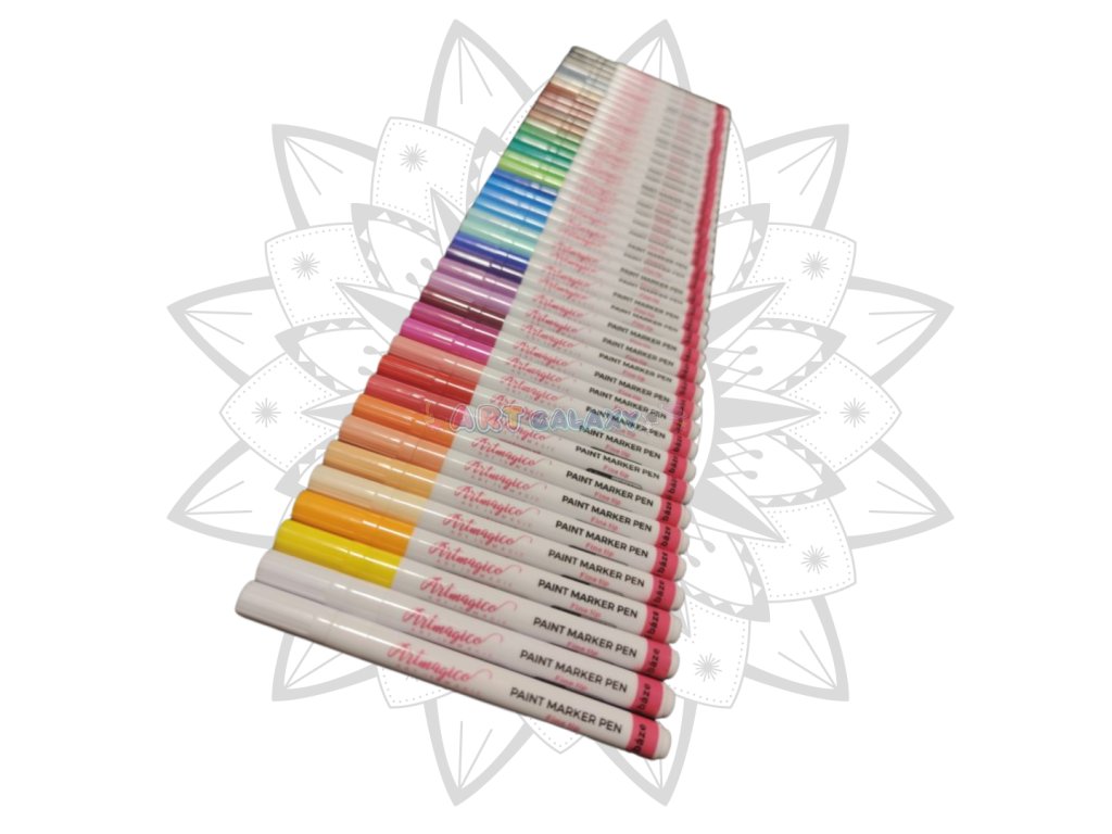 Akrylové fixy zn. Artmagico s jemným hrotem o šíři 1 mm a inkoustem prémiové kvality nabízíme v sadě 42 ks. Skvělou paletu barev, nejkvalitnější hrot a dokonale krycí inkoust v lesklých barvách si oblíbí každý umělec! Luxusní akrylové fixy Artmagico jsou velmi oblíbené zejména pro malování na kamínky. Artmagico nabízí fixy nejvyšší kvality v elegantním designu. Plynulý tok barvy zajišťuje kvalitní inkoust na vodní bázi. Inkoust je rychleschnoucí, trvalý, bez zápachu a zároveň netoxický. Barvy zůstávají po uschnutí hladké, lesklé a neprůhledné na všech typech povrchů. Hroty popisovačů Artmagico jsou ideální na detailní práci i vymalování menších ploch. Díky kombinaci vlastností popisovačů Artmagico budou Vaše výtvory vždy dokonalé.