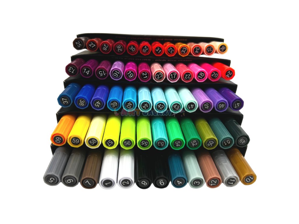 Akrylové fixy s extra jemným hrotem o síle 0,7 mm s 60 matnými barvami určenými pro profesionály i amatérské umělce. Perfektní krycí vlastnosti a nádherné odstíny barev potěší každého milovníka barev.