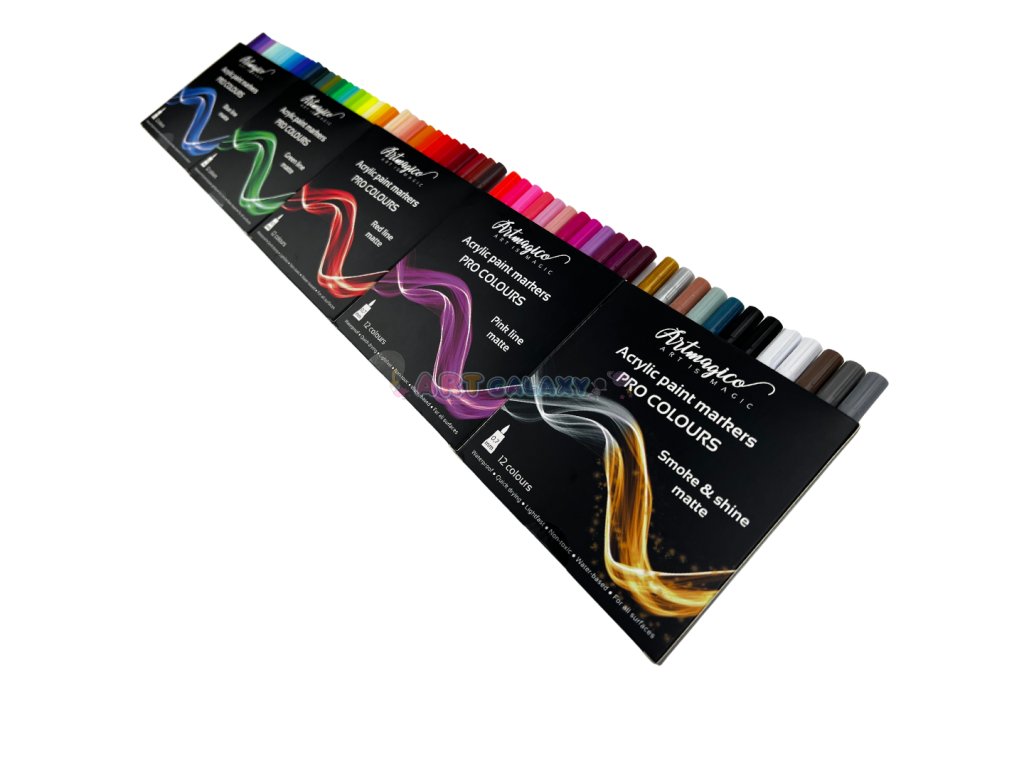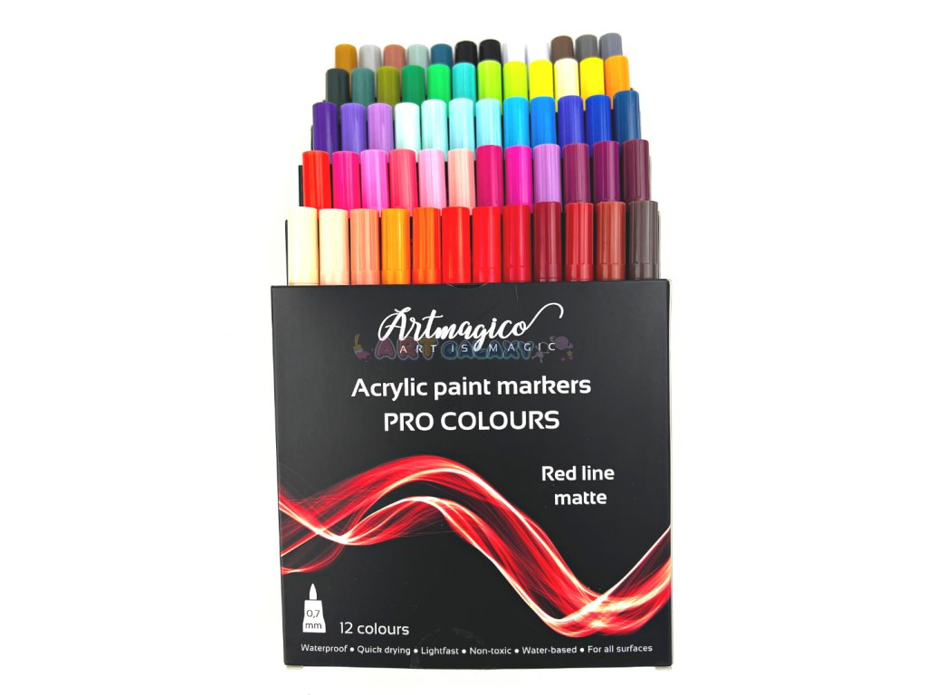 Artmagico nabízí moderní akrylové popisovače, jež jsou plněny kvalitním italským inkoustem a jejichž hroty jsou vyrobeny v Japonsku a jsou zárukou kvality a dlouhé životnosti. Barva inkoustu má vysokou krycí schopnost, je voděodolná a světlostálá, nedochází k jejímu blednutí, barvy zůstávají jasné a je možné je vzájemně míchat a tvořit tak další barevné odstíny. Díky konzistenci inkoustu je možné stínovat také za pomocí vlhkého štětce a dát tak malování s fixy nový umělecký rozměr.
