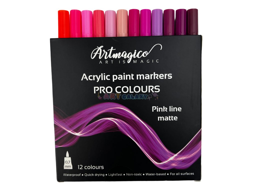 Akrylové fixy s extra jemným hrotem o síle 0,7 mm s 12 matnými barvami určenými pro profesionály i amatérské umělce. Perfektní krycí vlastnosti a nádherné odstíny barev potěší každého milovníka barev. Sada s odstíny růžových barev.