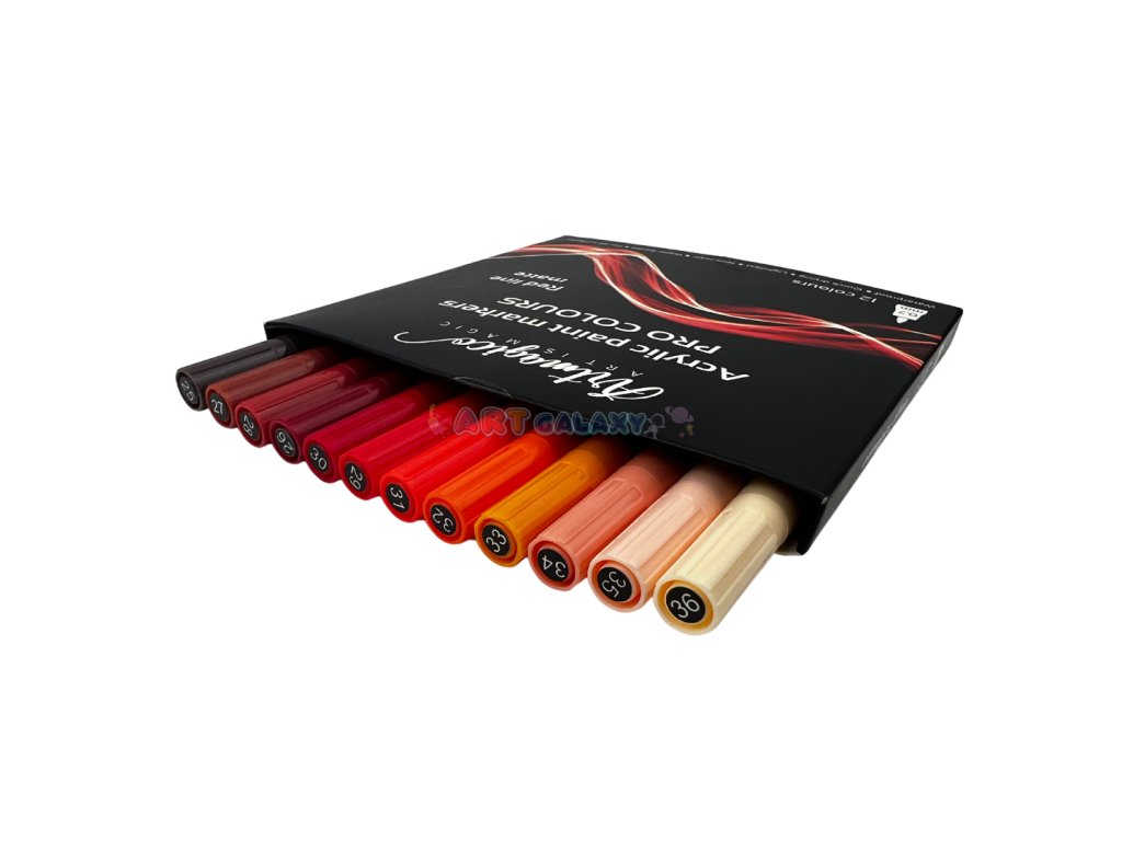 Akrylové fixy s extra jemným hrotem o síle 0,7 mm s 12 matnými barvami určenými pro profesionály i amatérské umělce. Perfektní krycí vlastnosti a nádherné odstíny barev potěší každého milovníka barev. Sada s odstíny červených barev.