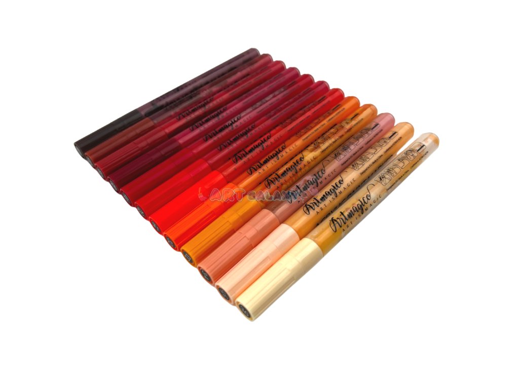 Artmagico nabízí moderní akrylové popisovače, jež jsou plněny kvalitním italským inkoustem a jejichž hroty jsou vyrobeny v Japonsku a jsou zárukou kvality a dlouhé životnosti. Barva inkoustu má vysokou krycí schopnost, je voděodolná a světlostálá, nedochází k jejímu blednutí, barvy zůstávají jasné a je možné je vzájemně míchat a tvořit tak další barevné odstíny. Díky konzistenci inkoustu je možné stínovat také za pomocí vlhkého štětce a dát tak malování s fixy nový umělecký rozměr.
