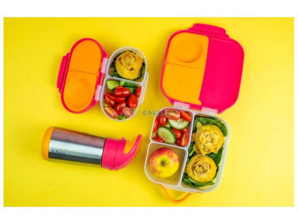 - b.box Svačinové boxy: Boxy s oddělenými přihrádkami a integrovanými příbory pro snadnou a praktickou konzumaci jídla.