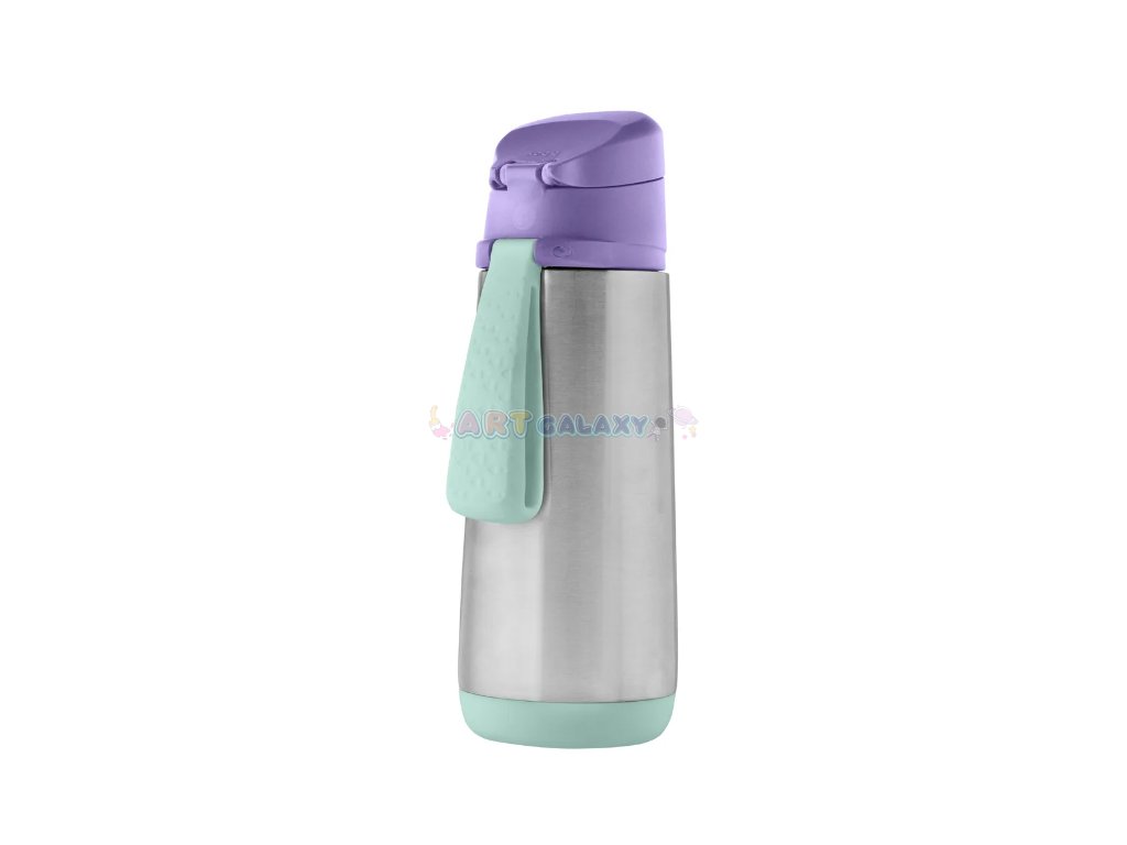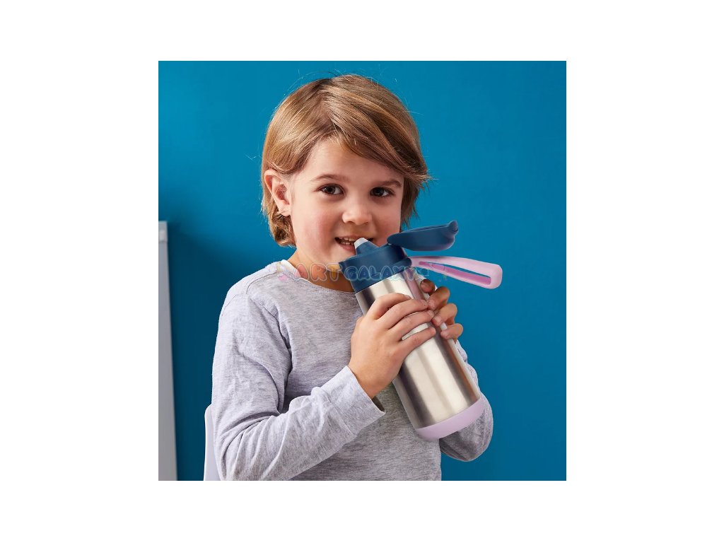 Dvouplášťová termoska z nerezové oceli udrží tekutiny studené až 15 hodin a teplé až 8 hodin. Termoska nabízí snadné průtokové pití z měkké silikonové savičky. Víčko termosky v zavřeném stavu zajistí, že je lahev nepropustná.