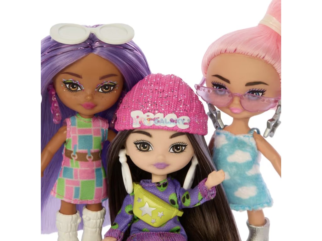S BARBIE® Extra Mini Minis sadou 5 ks získáte pestrou kolekci stylových panenek, které rozproudí dětskou fantazii a obohatí každou hru. Ať už je postavíte do vlastního módního mola, či je zapojíte do příběhů v domečcích pro panenky, vždy si užijete spoustu radosti a kreativity.