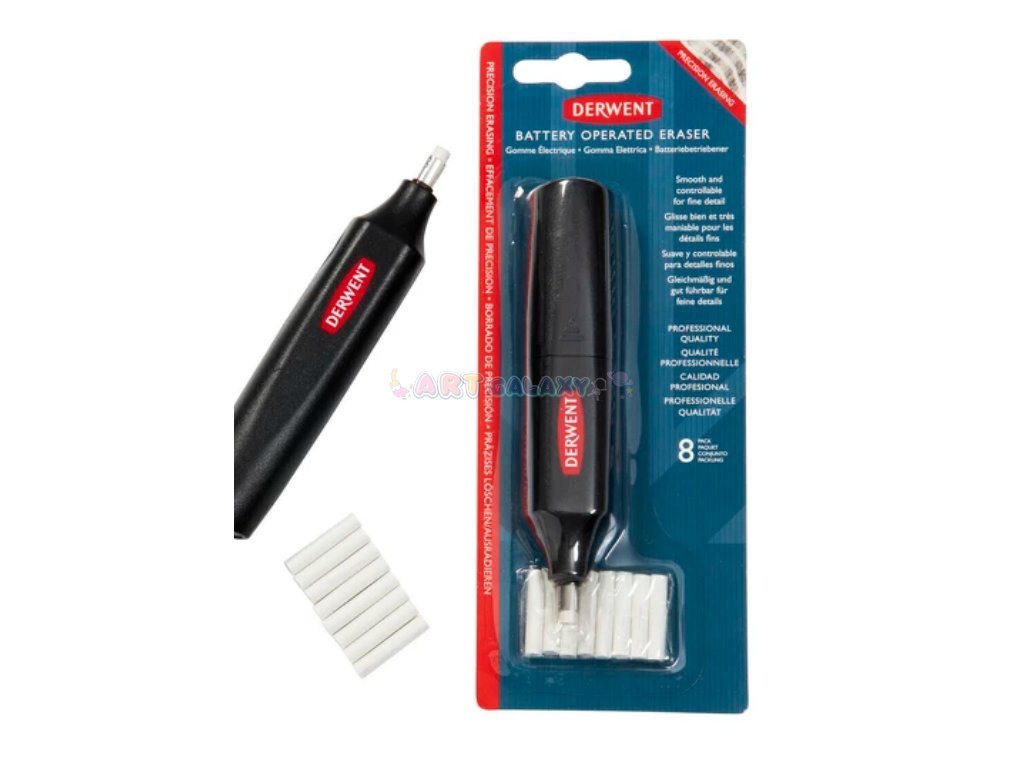 Bateriová guma od Derwentu přináší novou úroveň pohodlí a preciznosti do vašeho uměleckého procesu. Tento elektrický nástroj je navržen tak, aby vám umožnil odstranit i ty nejmenší detaily bez námahy a s vysokou přesností. Díky svému ergonomickému tvaru skvěle padne do ruky, což zaručuje komfort při delší práci.