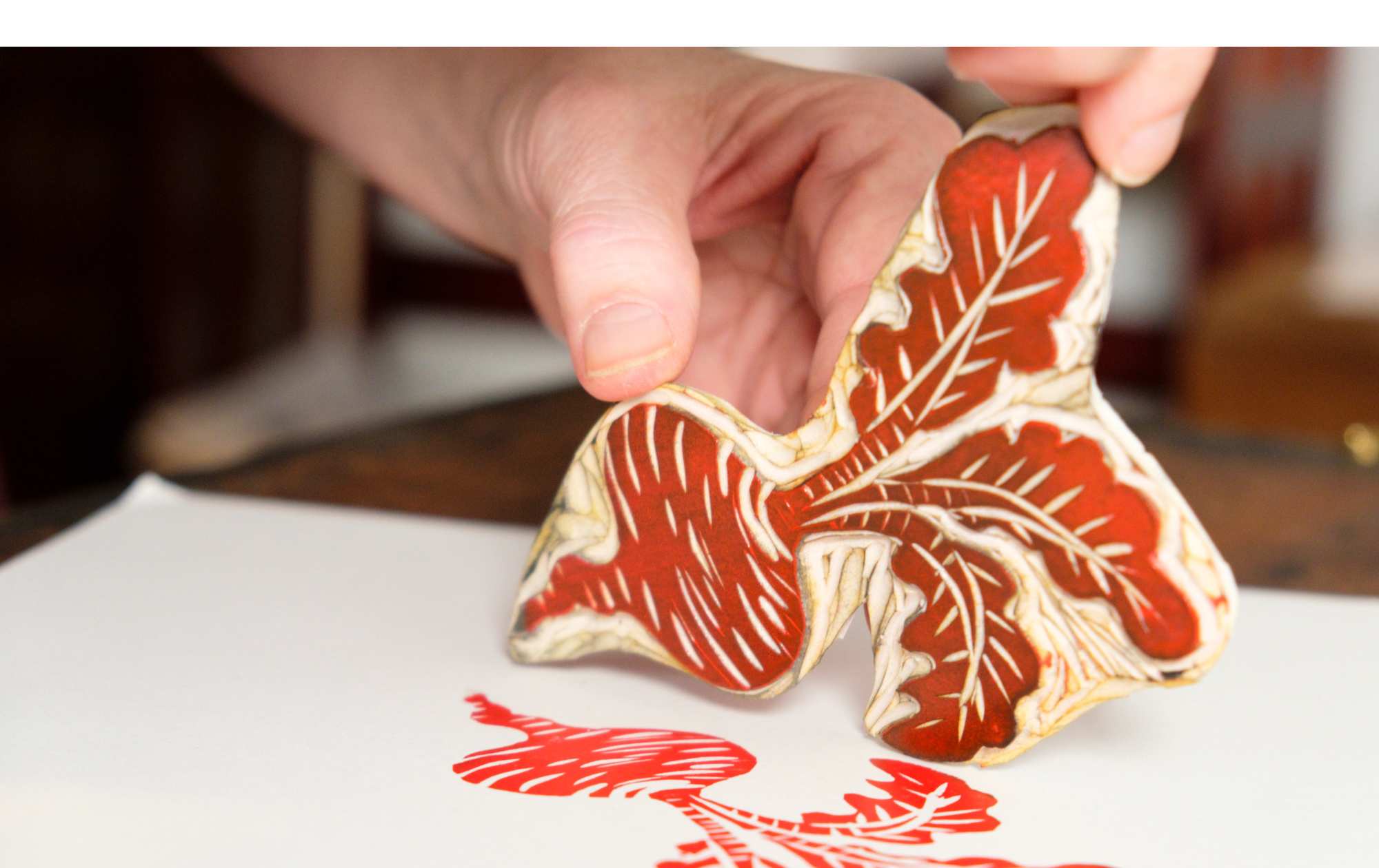 - Tisknutí: Pomocí tiskové lžíce nebo kostky rovnoměrně přitlačte papír na linoleum, aby se barva dobře otiskla. Můžete použít i tiskařský lis, pokud jej máte k dispozici.