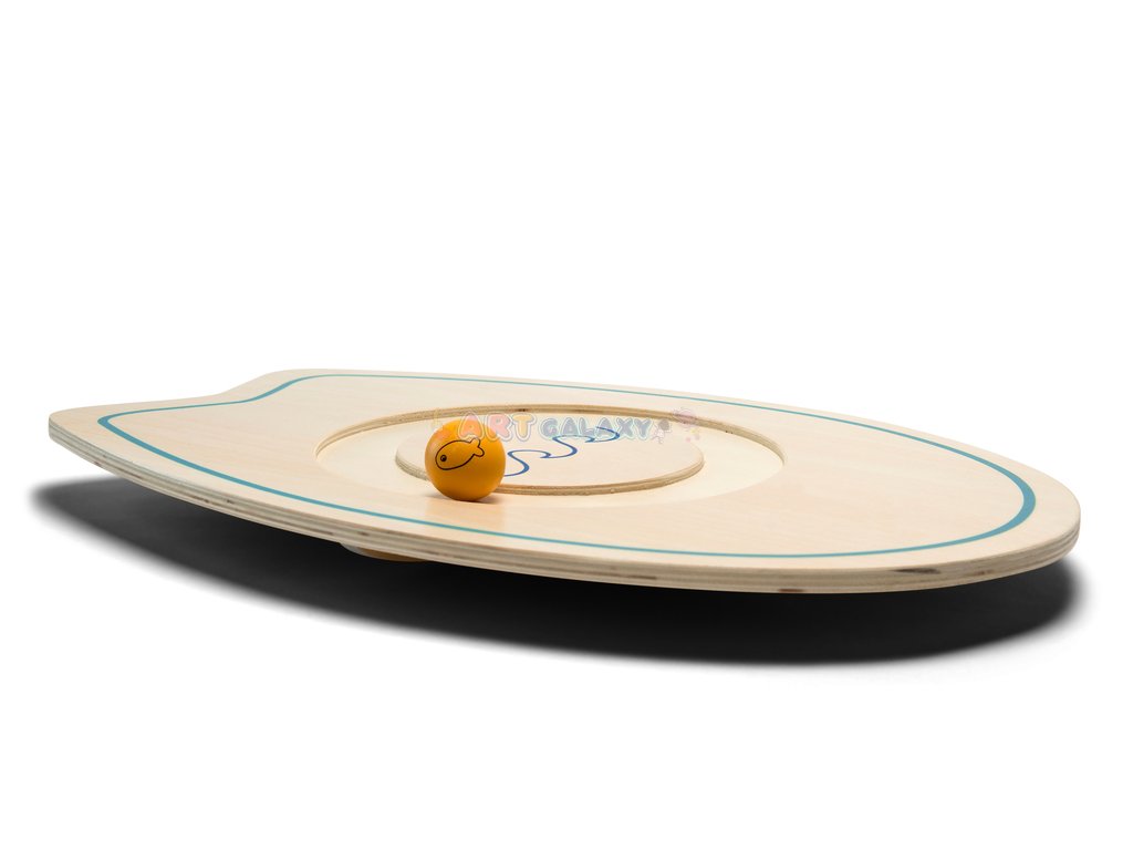 - Součástí balení: Prkno a míčky s obrázky ryb a žraloků (2 velké - průměr 3,5 cm, 3 malé - průměr 2 cm). Děti se na prkně snaží udržet rovnováhu a zároveň s prknem krouží a tím koulí s míčky