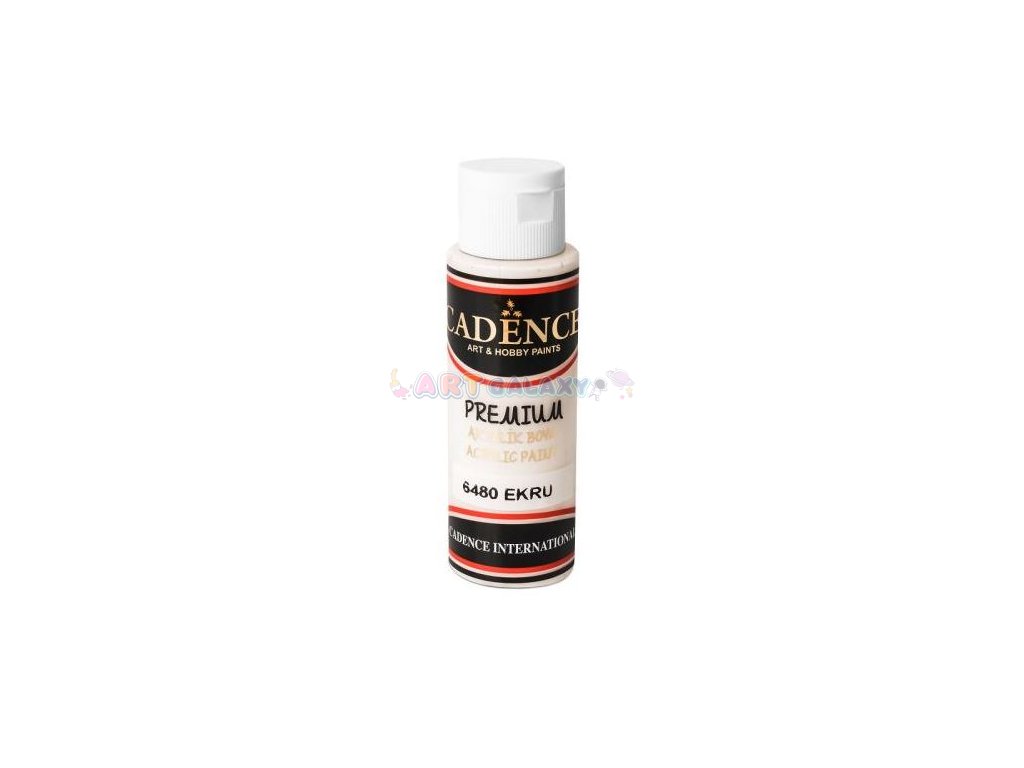Akrylové barvy turecké značky Cadence Premium jsou krémové, vysoce krycí a syté barvy s bohatým obsahem pigmentu. Akrylové barvy lze využít na různé na povrchy jako je papír, karton, dřevo, kámen, plátno apod. Barvy je možné mezi sebou míchat a vytvořit si nové odstíny. Tyto akrylové barvy mají hustší krémovou konzistenci (je nutné protřepat lahvičku před použitím), jsou vysoce krycí, mají syté barvy bohaté na pigment, jsou ředitelné vodou, po zaschnutí jsou pak voděodolné. Vhodné přetřít lakem k dokonalé fixaci malby. Barvy jsou v měkké lahvičce a uzávěr má kapátko pro přesné dávkování.