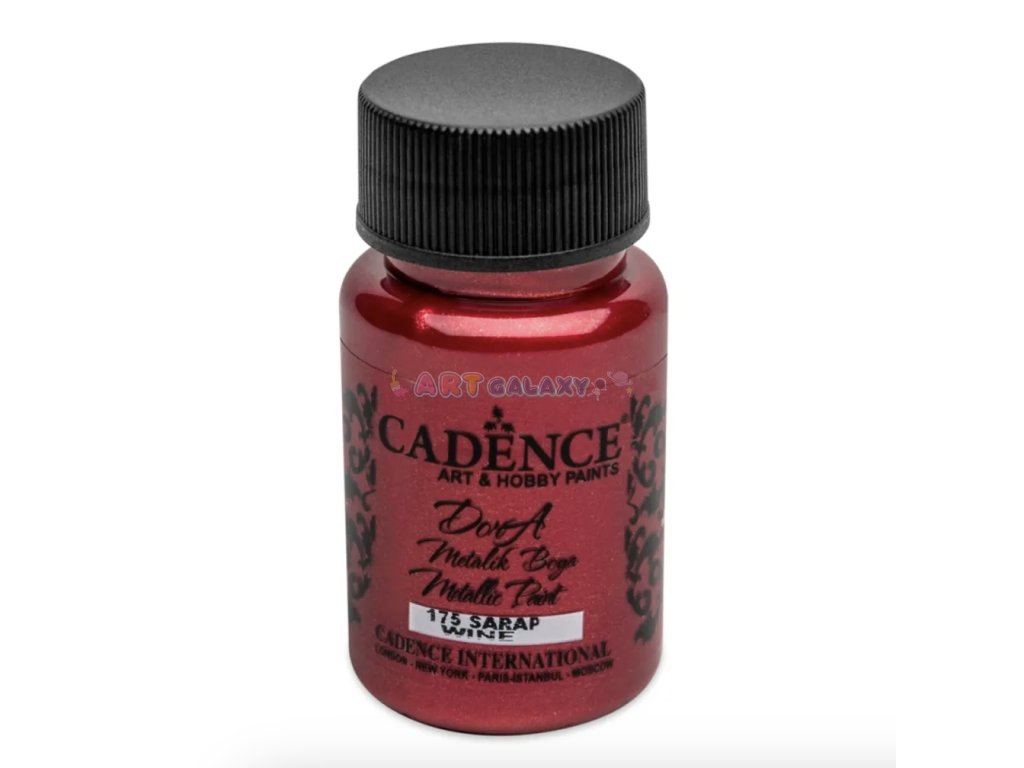 Akrylové barvy turecké značky Cadence řady Dora Metallic jsou vysoce kvalitní, vodou ředitelné barvy pro vnitřní a venkovní řemeslné použití a dekorativní malbu. Extrémně krásný metalický třpytivý efekt. Barvy s obsahem metalických akcentů, kde doporučujeme dva tenké nátěry pro dokonalý vzhled. Tyto akrylové barvy mají hustší krémovou konzistenci (je nutné protřepat lahvičku před použitím), jsou vysoce krycí, mají syté barvy bohaté na pigment, jsou ředitelné vodou, po zaschnutí jsou pak voděodolné. Vhodné přetřít lakem k dokonalé fixaci malby. Baleno v plastových průhledných lahvičkách.