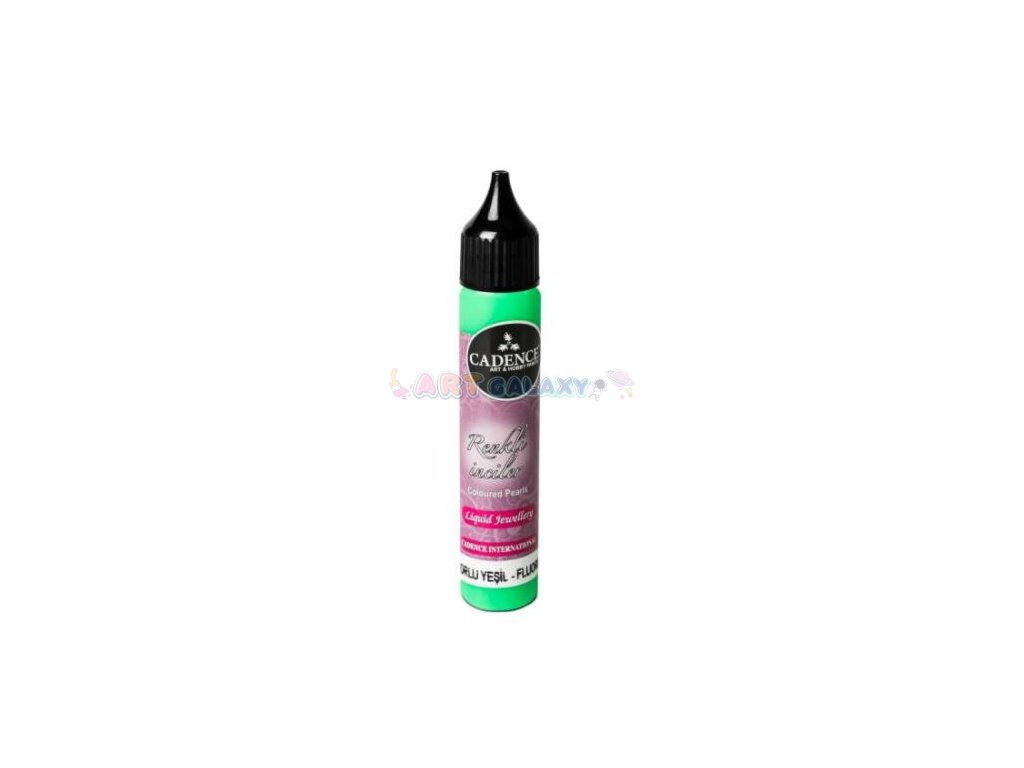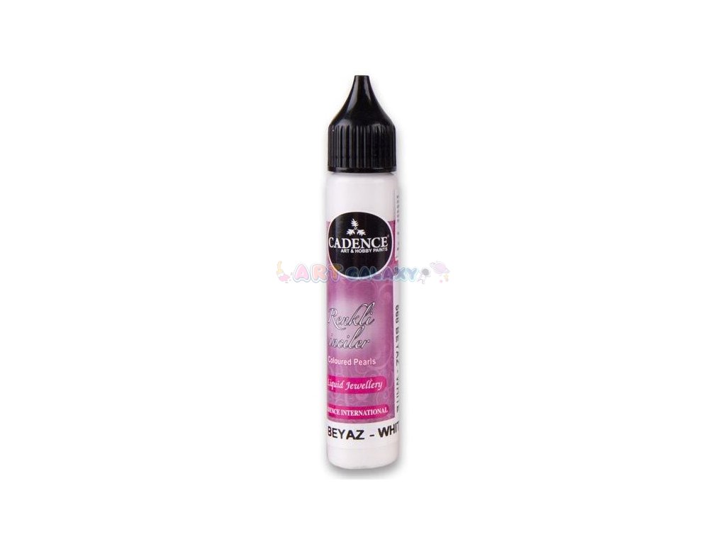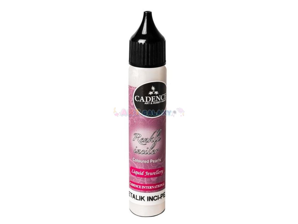 Perlové akrylové pero turecké značky Cadence je skvělým pomocníkem při vytváření dekorací. Vznikají krásné třpytivé tekuté perly, které lze použít na zdobení všech povrchů. Vymáčknutím opatrně vytvoříme perličku libovolné velikosti, zase krouživými nebo jinými libovolnými pohyby vytvoříme zajímavé ornamenty, použít lze na všechny druhy povrchů. Tužší barva, která drží tvar, k dispozici je široká škála barev a textur - kovové, neprůhledné, průhledné, fluorescenční. Doporučuje se aplikovat v půlkulatých kapkách a nechat 24 hodin pro úplné zaschnutí. Tkaniny s konečnou úpravou by se měly před aplikací vyprat a vyžehlit zezadu. Baleno v plastových lahvičkách s aplikátorem.