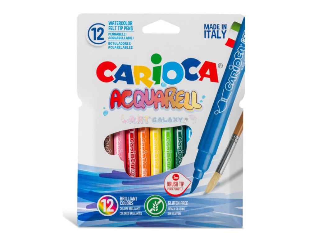 Objevte kouzlo akvarelových barev s Carioca Acquarell. Tato sada obsahuje 12 intenzivních akvarelových fixů, které vám umožní vytvářet jemné přechody a nádherné vodové efekty. S fixy Carioca Acquarell se vaše kresby promění v umělecká díla. Ideální pro umělce všech věkových kategorií, od začátečníků po pokročilé.