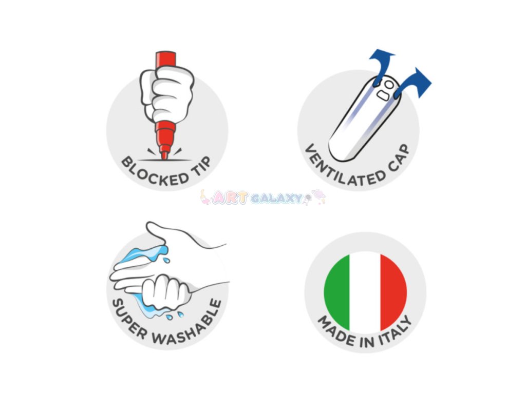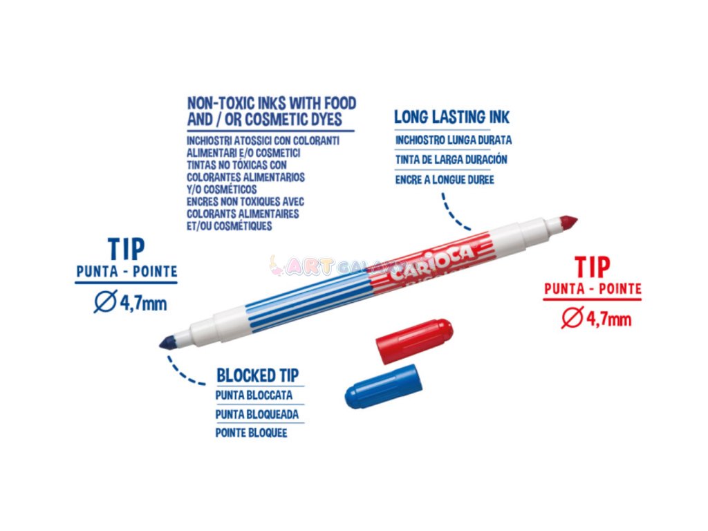 - Carioca Fixy: Dermatologicky testované fixy s sytými barvami, snadno omyvatelné.