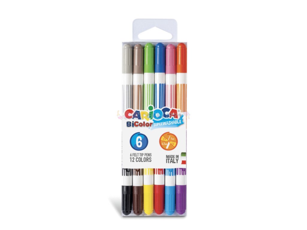 Carioca Bi-color popisovače jsou skvělým doplňkem do školy i na domácí tvoření. Díky duálním hrotům lze snadno měnit mezi barvami, což podporuje kreativní myšlení a vizuální efekty v poznámkách.