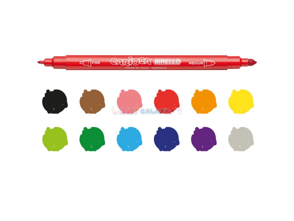 Carioca Birello box 12 ks je všestranná sada oboustranných fixů, která nabízí maximální kreativitu a pohodlí. Každý fix je vybaven dvěma hroty: jemným hrotem pro detaily a jemné linie a silnějším hrotem pro ploché vybarvování a silnější tahy. Tato kombinace umožňuje širokou škálu uměleckých technik, od precizních ilustrací až po výrazné plakátové kresby.