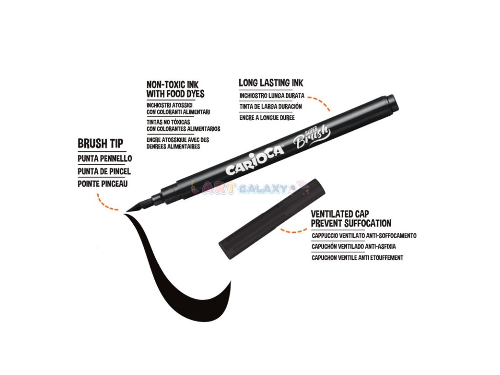 Carioca Super Brush fixy s jemným štětcovým hrotem pro precizní kreslení a malování. Zářivé barvy a kvalitní inkoust pro živé a výrazné obrázky. Ideální pro kreslení, ilustrování a kaligrafii, vhodné jak pro děti, tak dospělé.