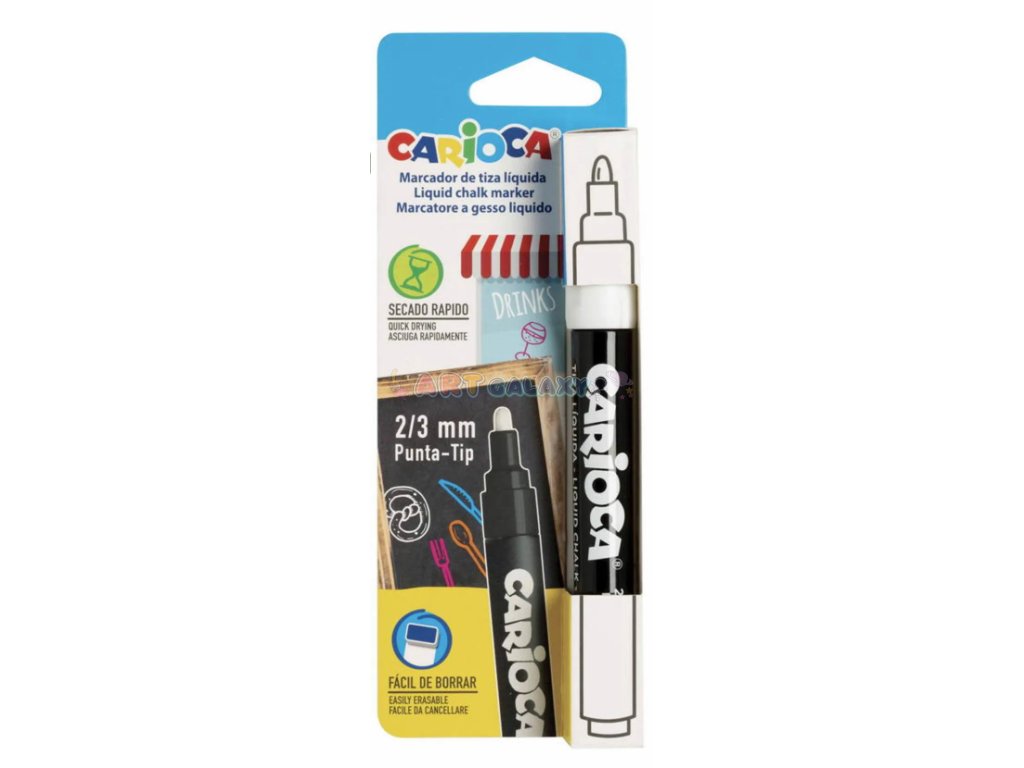 Carioca křídový popisovač je skvělým doplňkem vaší výtvarné a psací výbavy, ať už jste student, učitel, profesionál nebo jen někdo, kdo miluje kreativitu a organizaci. Tento popisovač vám umožní snadno a efektivně komunikovat vaše myšlenky a nápady na různých površích.