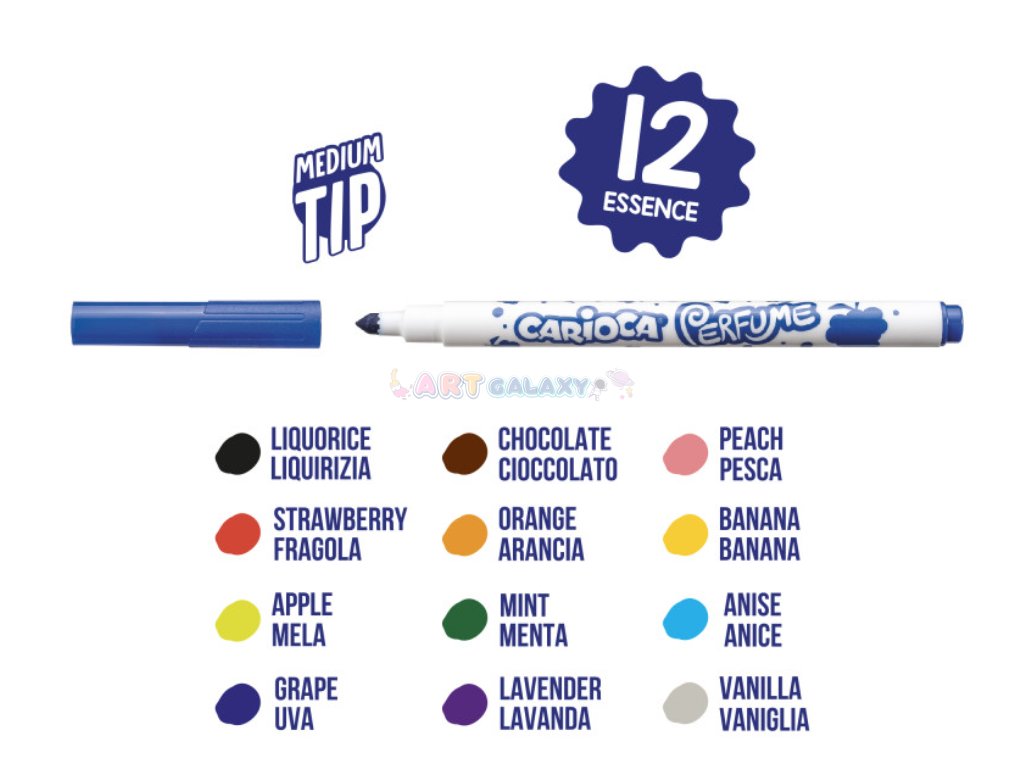 Carioca Perfume box 12 ks je inovativní sada fixů, která přináší nový rozměr do světa kreslení. Každý z 12 fixů v této sadě obsahuje nejen jasný a sytý inkoust, ale také příjemnou vůni, která obohacuje vaše umělecké zážitky. S těmito voňavými fixy mohou děti i dospělí vytvářet krásné a voňavé kresby, které zaujmou všechny smysly.