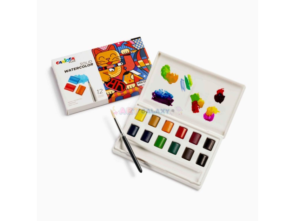 Akvarelové barvy značky Carioca jsou cenově dostupné a kvalitní výtvarné potřeby vhodné pro začátečníky i pokročilé malíře. Nabízí širokou paletu jasných a sytých barev, které se snadno míchají a vrství, což umožňuje tvorbu různých efektů a barevných tónů. Tyto barvy jsou vhodné pro použití na různých površích, včetně papíru, plátna a akvarelových bloků.