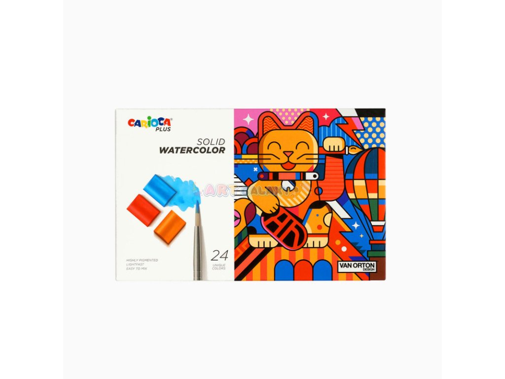 Akvarelové barvy značky Carioca jsou cenově dostupné a kvalitní výtvarné potřeby vhodné pro začátečníky i pokročilé malíře. Nabízí širokou paletu jasných a sytých barev, které se snadno míchají a vrství, což umožňuje tvorbu různých efektů a barevných tónů. Tyto barvy jsou vhodné pro použití na různých površích, včetně papíru, plátna a akvarelových bloků.