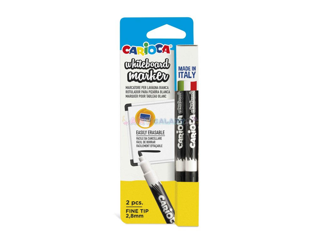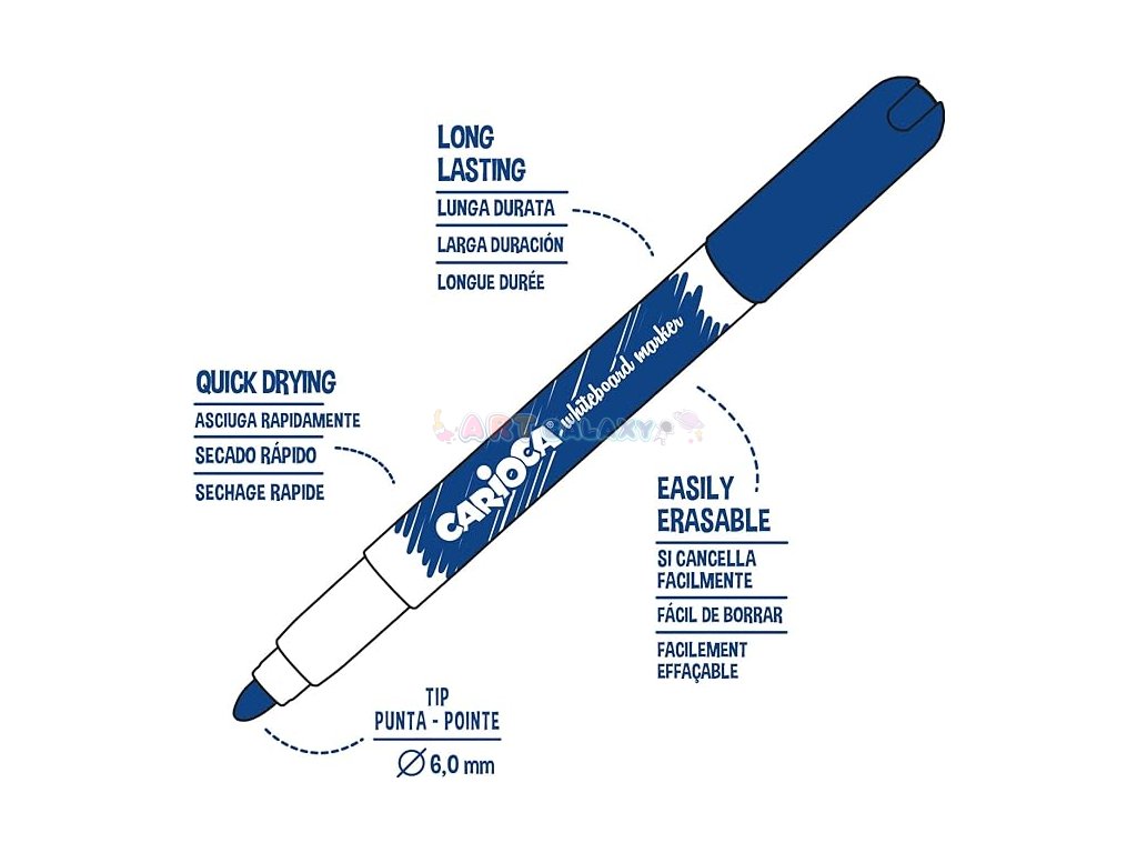 Značkovače na bílé tabule značky Carioca jsou plněné pigmentovými za sucha stíratelnými inkousty. Stopa písma je za sucha stíratelná. Jsou určeny pro psaní na neporézní bíle tabule ve školách a kancelářích.
