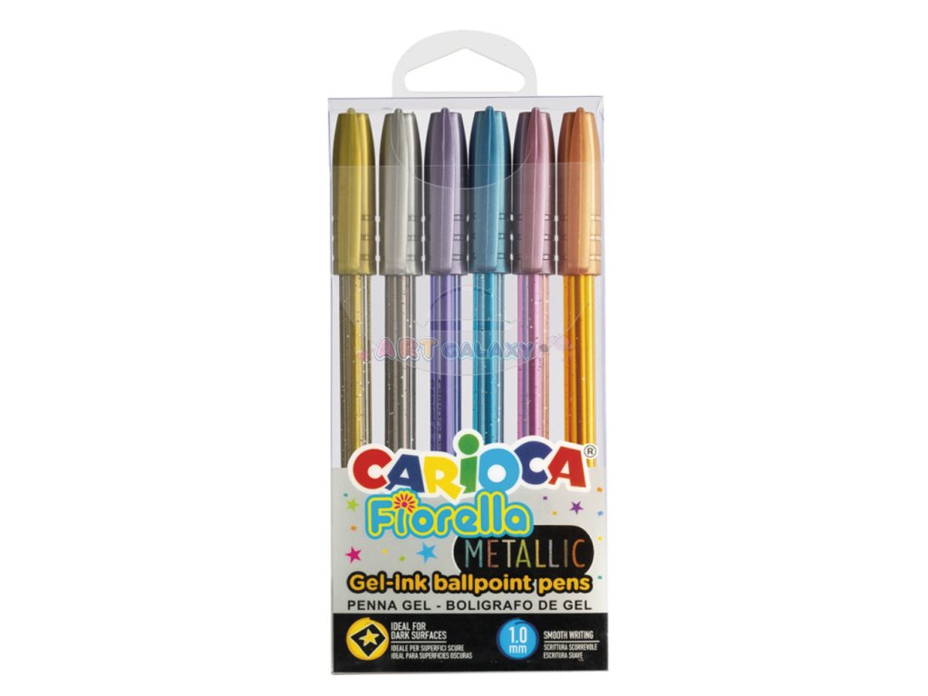 Carioca Fiorella Metallic je sada kuličkových per s metalickým leskem, která přidá vašim výtvarným projektům zářivý a elegantní vzhled. Tato sada obsahuje 6 různých barev, které se snadno nanášejí a poskytují intenzivní a dlouhotrvající barvy.