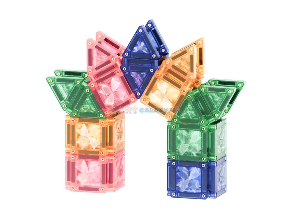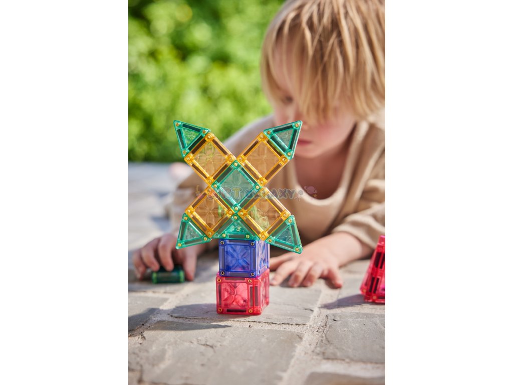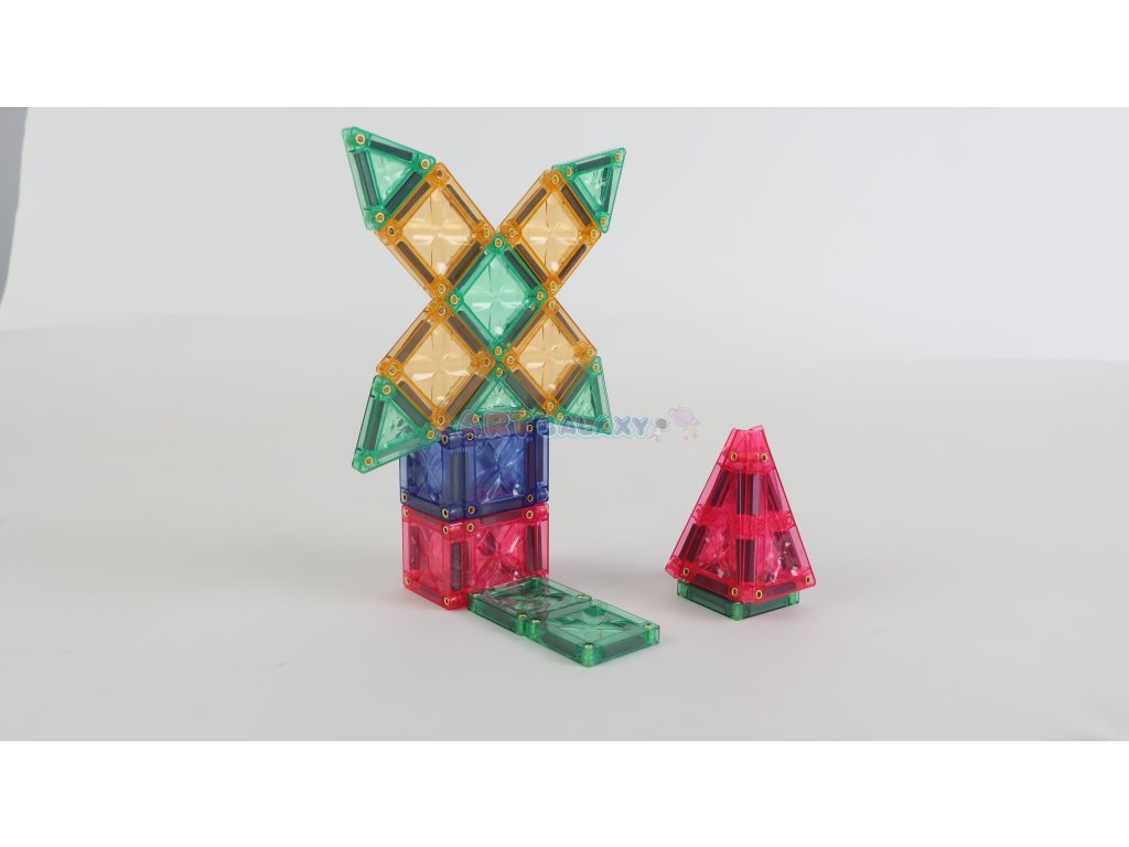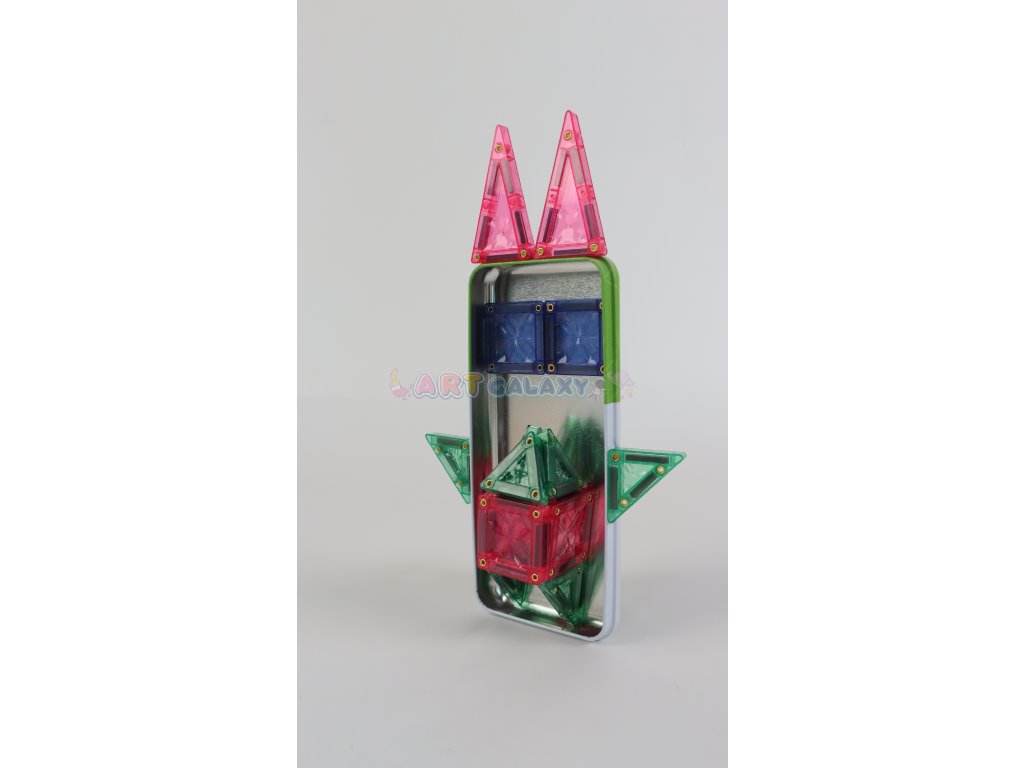 28 mini magnetických destiček je uloženo v kovové plechovce, která udrží všechny vaše mini stavby ve vzpřímené poloze a neporušené i na cestách.