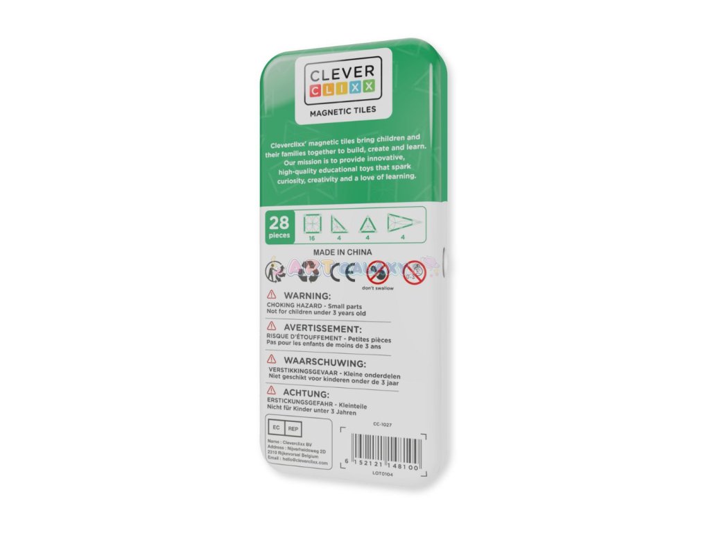 Balení Cleverclixx Mini Tiles Pack - 28 dílků je ideální pro malé stavitele a malé ruce. Tyto kompaktní magnetické dlaždice si můžete snadno vzít s sebou na cesty - ideální na dovolenou, na cesty autem, na návštěvu rodiny nebo do restaurace. Ať jste kdekoli, Cleverclixx přináší kreativní zábavu na dosah.