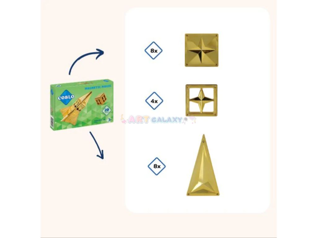 Představujeme exkluzivní COBLO magnetickou stavebnici v zlatém provedení! Tato speciální edice obsahuje 20 elegantních zlatých dílků, které dodají vašim stavbám jedinečný a luxusní vzhled. Skvělý způsob, jak obohatit dětskou kreativitu a představivost.