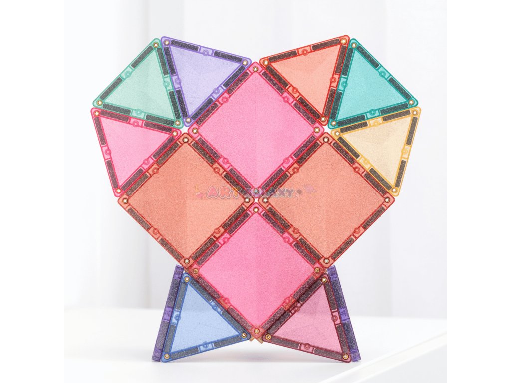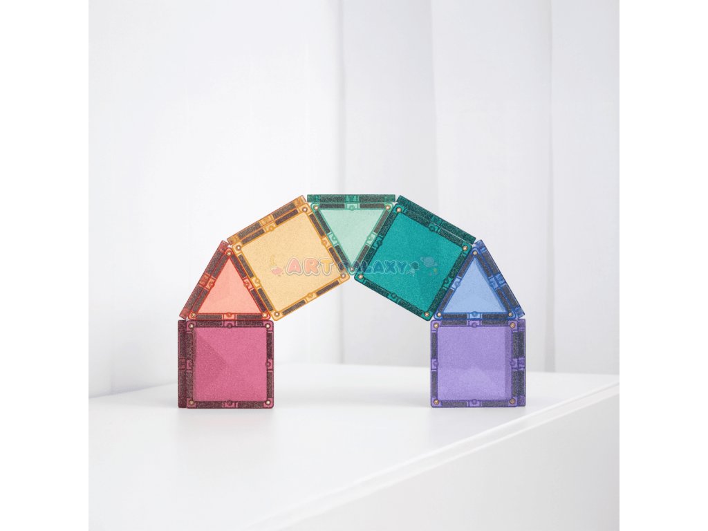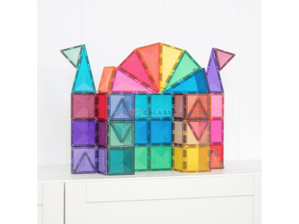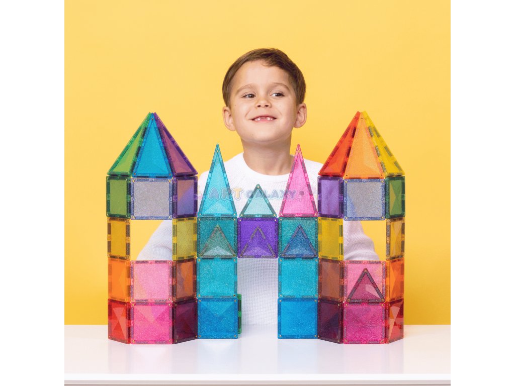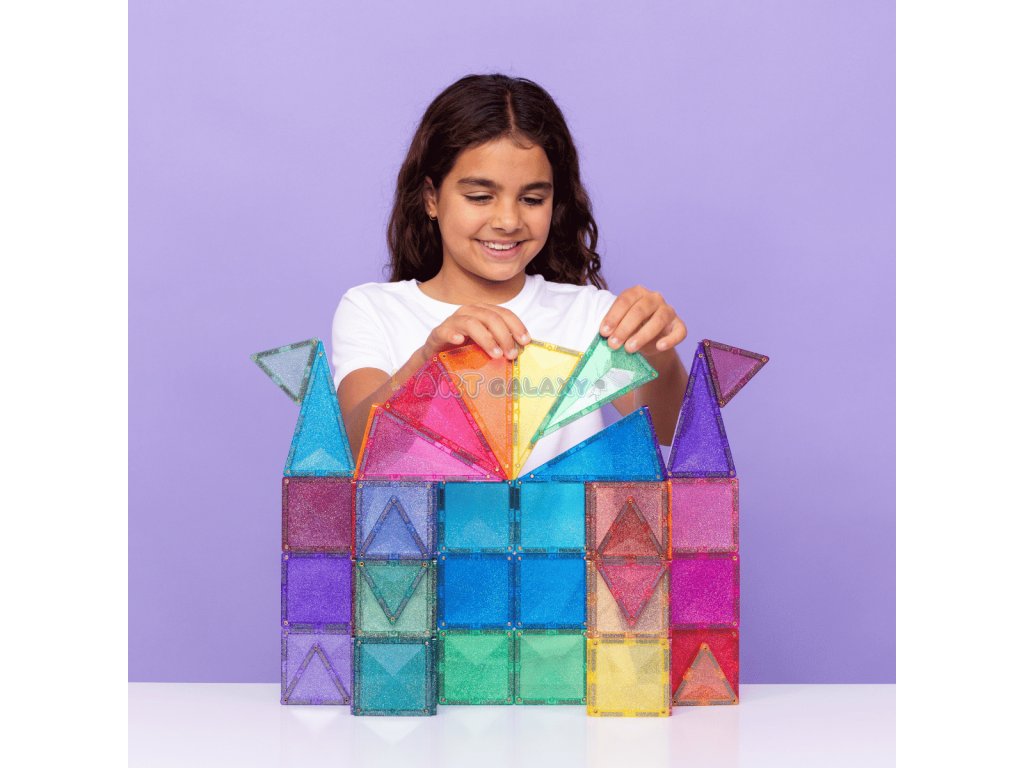 Sada Třpytivého zámku je navržená pro magické stavby, které okouzlí děti i rodiče. Malí stavitelé mohou začít jednoduchou čtvercovou věží a postupně ji doplnit o trojúhelníkové střechy. Spojením více dílků vznikají nádherné hrady se špičatými věžemi, barevnými vitrážemi i mosty, které se při každém pohybu světla třpytí jako křišťál.