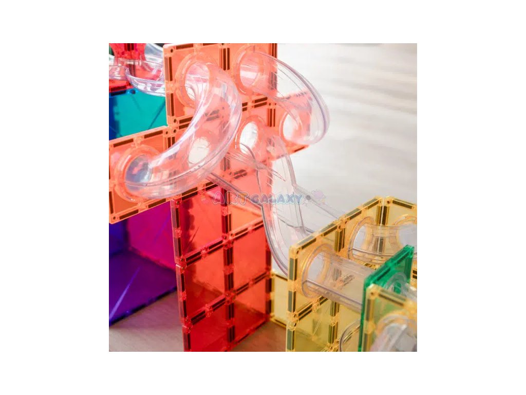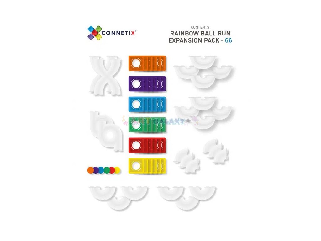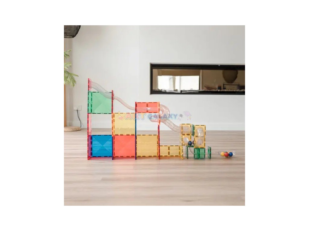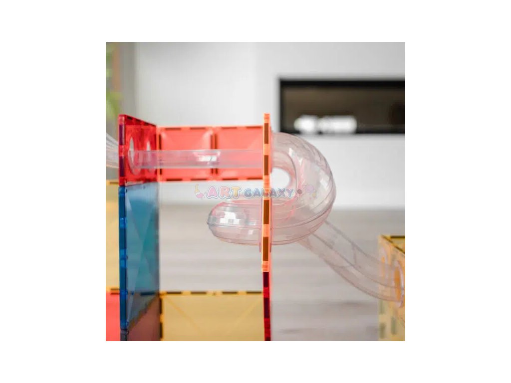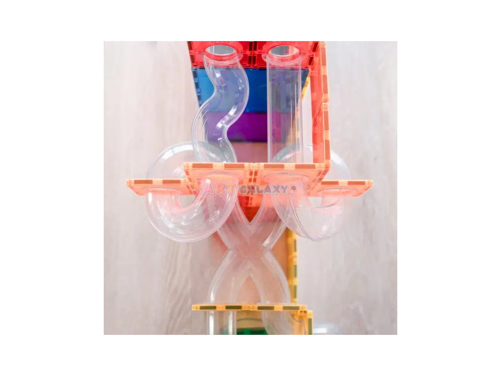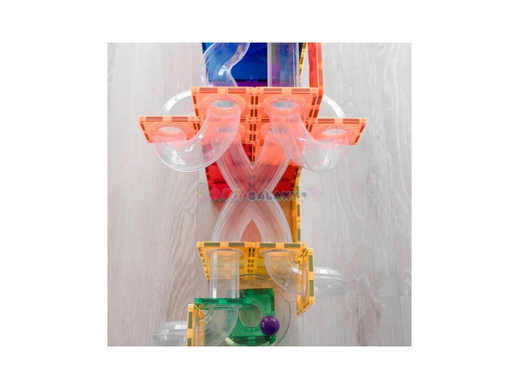 Connetix - Magnetická stavebnice s rozšiřující sadou kuličkové dráhy obsahuje 66 dílků a je navržena tak, aby byla zábavná a vzdělávací. Tato sada obsahuje různé typy trubic a spojovacích dílů, které umožňují sestavit nespočet variant kuličkových drah. Děti mohou sledovat, jak kuličky sviští skrz průhledné tunely, což přidává další rozměr zábavy a učení.