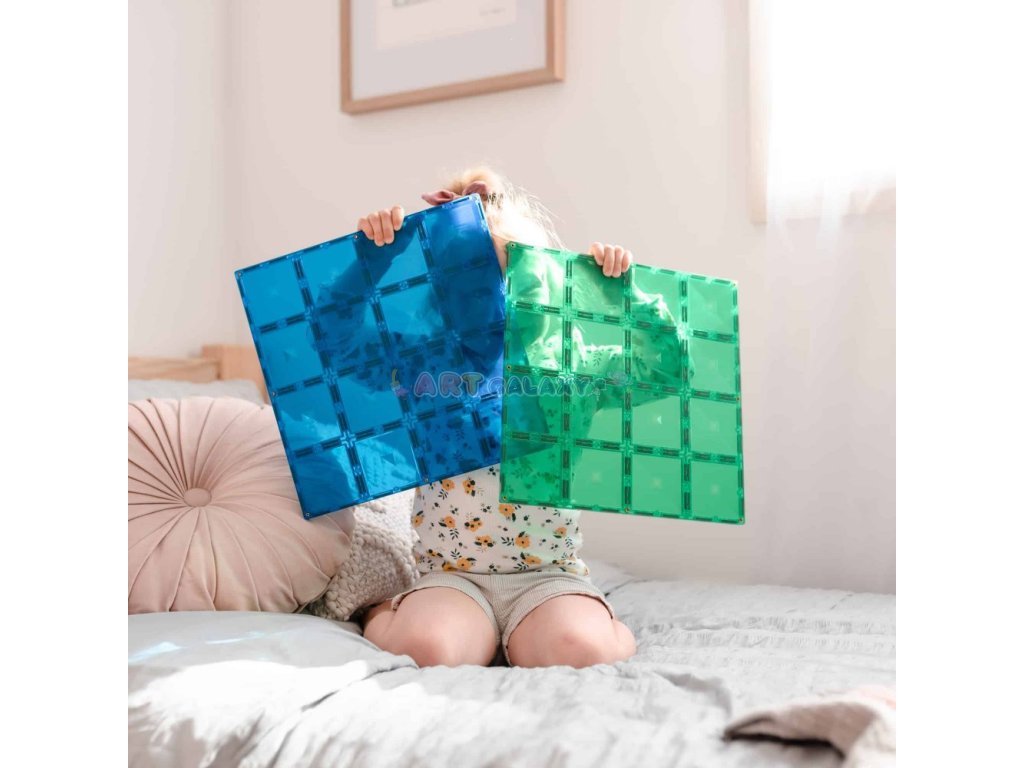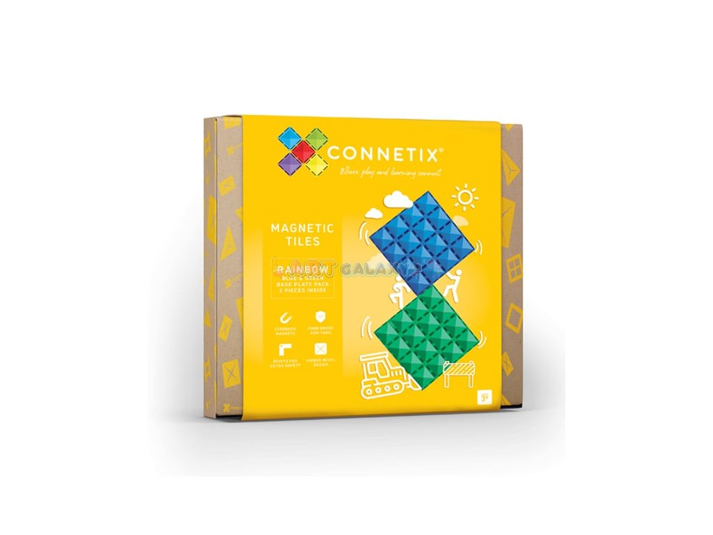 Connetix - Magnetická základna s 2 díly (modrá a zelená) je perfektním doplňkem pro všechny milovníky magnetických stavebnic. Tyto velké základní desky (30x30 cm) posunou stavění na další úroveň a umožní dětem tvořit stabilnější a větší konstrukce.