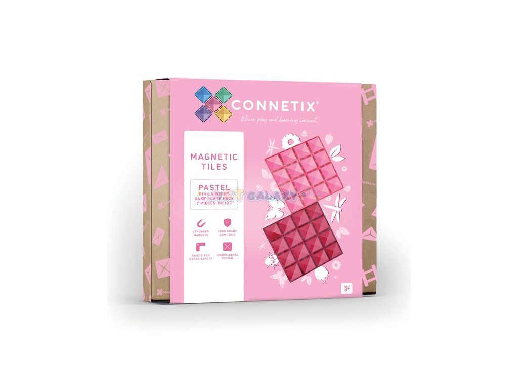 Connetix - Magnetická základna s 2 díly (růžová a fialová) je perfektním doplňkem pro všechny milovníky magnetických stavebnic. Tyto velké základní desky (30x30 cm) posunou stavění na další úroveň a umožní dětem tvořit stabilnější a větší konstrukce.