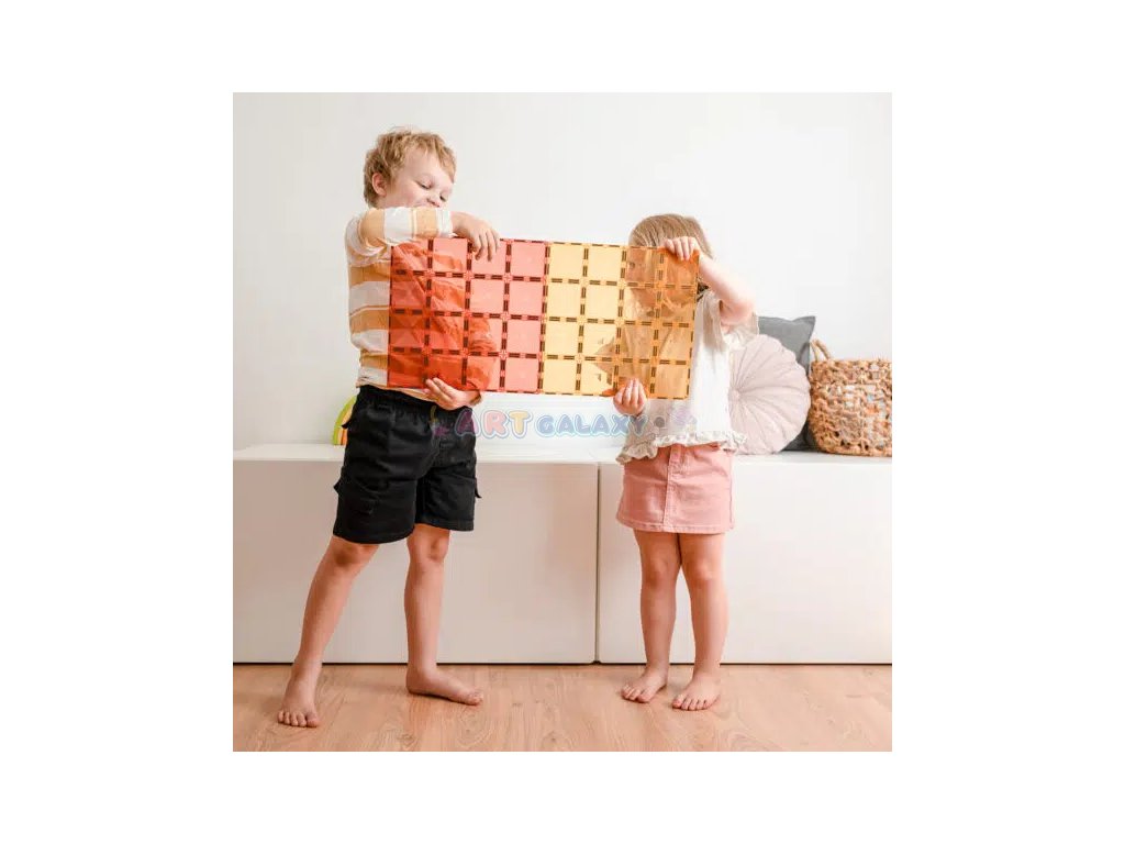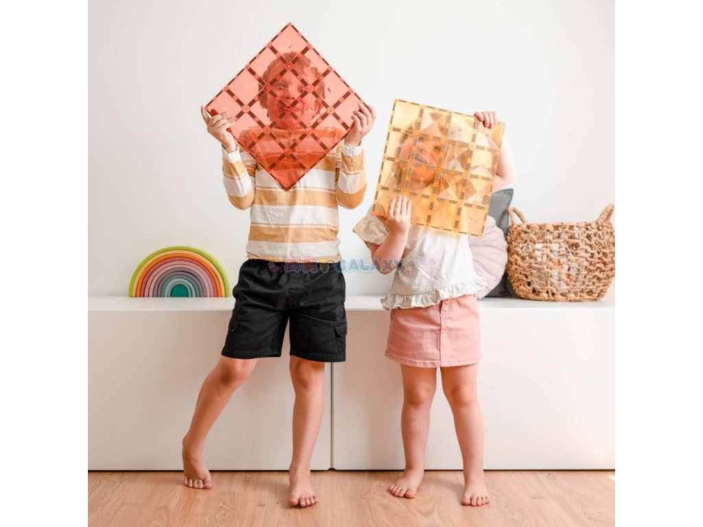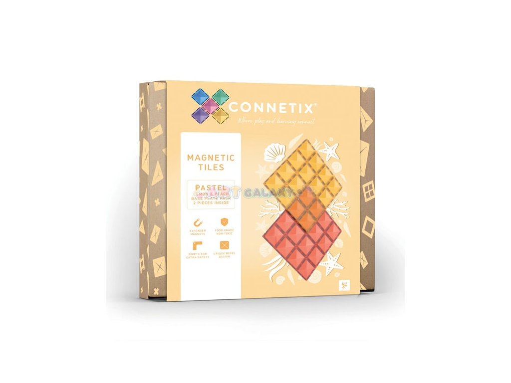 Connetix - Magnetická základna s 2 díly (žlutá a meruňková) je perfektním doplňkem pro všechny milovníky magnetických stavebnic. Tyto velké základní desky (30x30 cm) posunou stavění na další úroveň a umožní dětem tvořit stabilnější a větší konstrukce.
