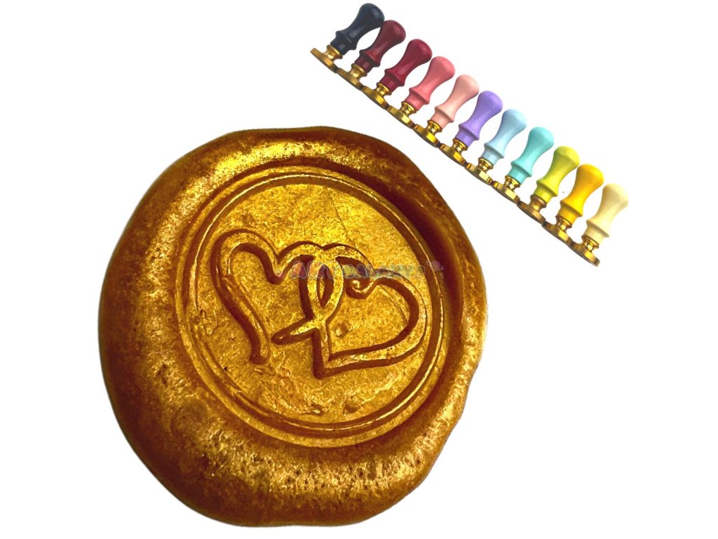 Pečetidlo Dva srdíčka je ideální pro dekorování všeho druhu, zdobení obálek, přání, svatebních oznámení, jmenovek a další zdobeni. Ozdobte své produkty pečetí. Přidejte pečeť na domácí produkty: ať už víno, nebo marmelády. Ozdobte vše, čemu chcete dodat větší eleganci a sváteční charakter. Objevujte kouzlo pečetění a vraťte se s námi zpět do minulosti, kdy každé psaní bylo zdobeno touto elegantní technikou. Pečetidlo má mosaznou hlavu s vyraženým motivem a je doplněno dřevěnou rukojetí v různých barevných variantách.