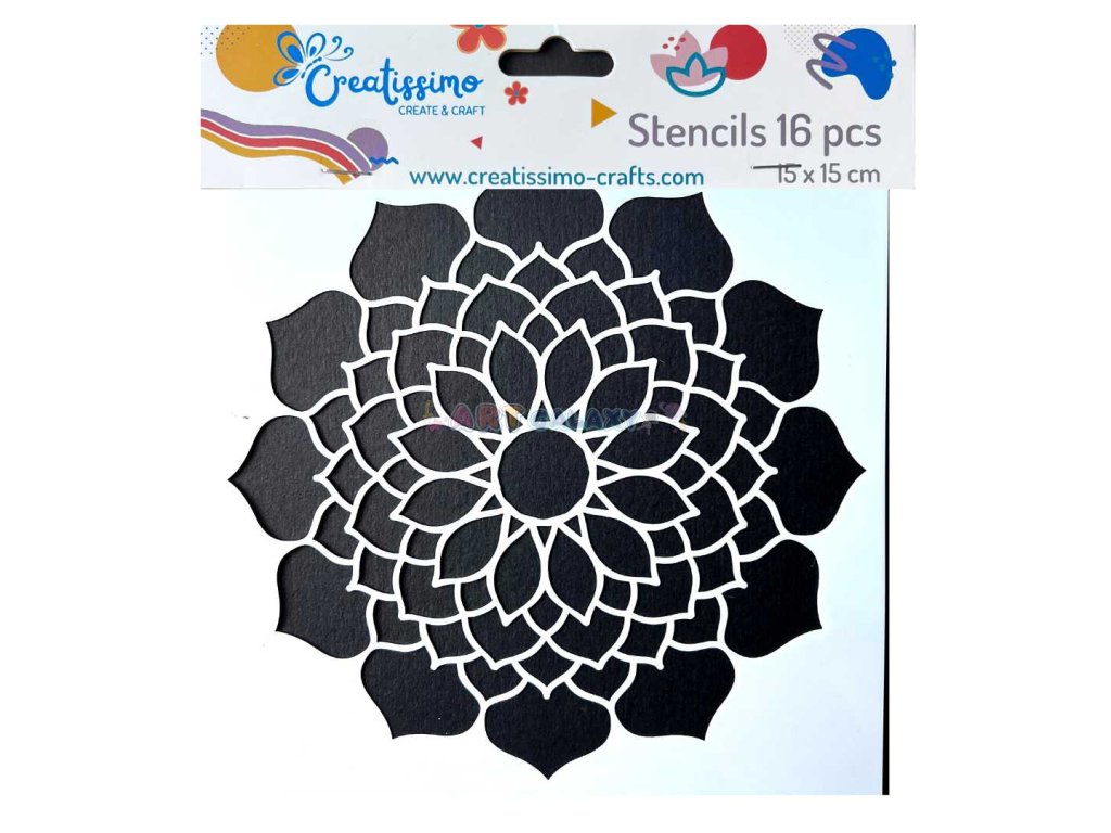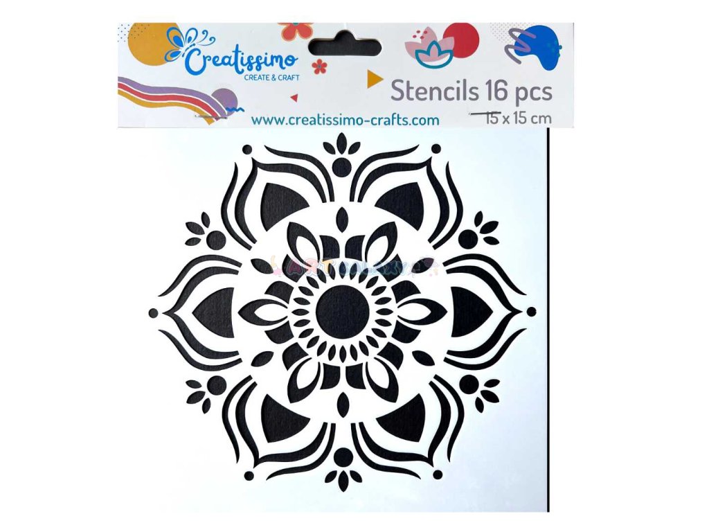 - plastová šablona značky Creatissimo s 16 motivy mandal