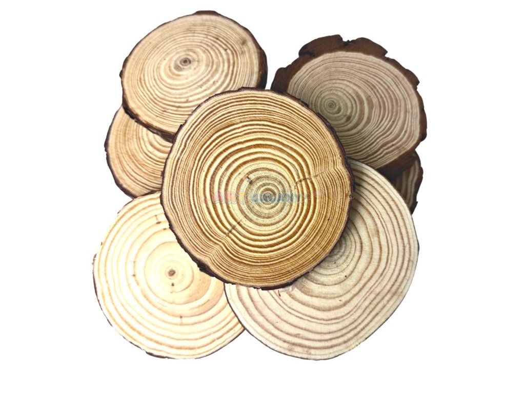 Podtácky: Kolečka lze využít jako originální podtácky pod hrnky nebo sklenice. Můžete je nechat v přírodním stavu pro rustikální vzhled, nebo je ozdobit podle svého vkusu a vytvořit tak stylový a praktický doplněk do vašeho domova.