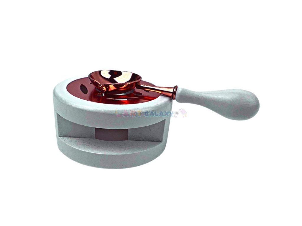 Dřevěný stojánek a pečetní lžička ve 3 barevných provedení, který výrazně usnadní manipulaci s voskem při pečetění. Pod stojánek se vloží zapálená čajová svíčka a stojánek slouží k odložení pečetní lžičky, kde je vložen pečetní vosk, který se teplem z čajové svíčky rozehřeje. Při manipulaci se stojánkem, po dokončení pečetění, dbejte zvýšené opatrnosti, kovová část stojánku bude rozpálená. Krásné barevné provedení a sladění stojánku a lžičky navodí příjemný pocit při této uklidňující činnosti, kterou si zamilujete.