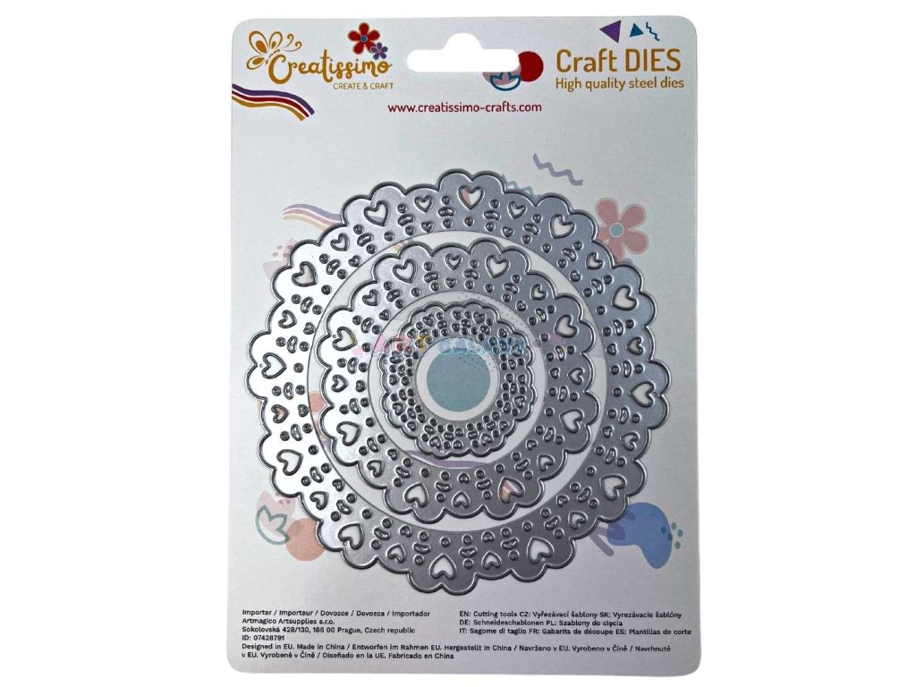 Vyřezávací šablony Creatissimo: Perfektní pro embosování a detailní vyřezávání. Oživte své scrapbooking projekty, pozvánky a dekorace s profesionálním vzhledem díky vyřezávacím šablonám. Šablona v designu Kulaté bordury