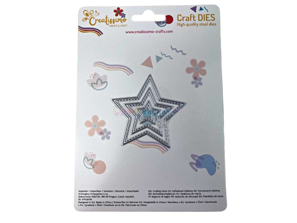Vyřezávací šablony Creatissimo: Perfektní pro embosování a detailní vyřezávání. Oživte své scrapbooking projekty, pozvánky a dekorace s profesionálním vzhledem díky vyřezávacím šablonám. Šablona v designu hvězd. V balení najdete 3 kusy.