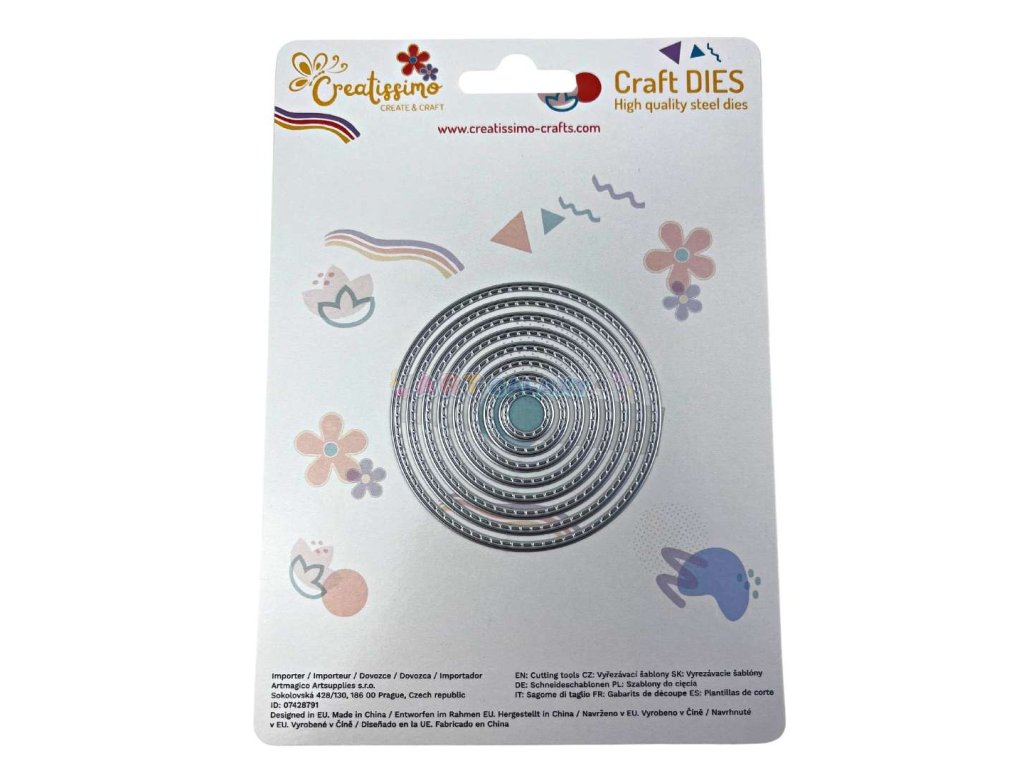 Vyřezávací šablony Creatissimo: Perfektní pro embosování a detailní vyřezávání. Oživte své scrapbooking projekty, pozvánky a dekorace s profesionálním vzhledem díky vyřezávacím šablonám. Šablona v designu Kruhu. V balení najdete 8 kusů